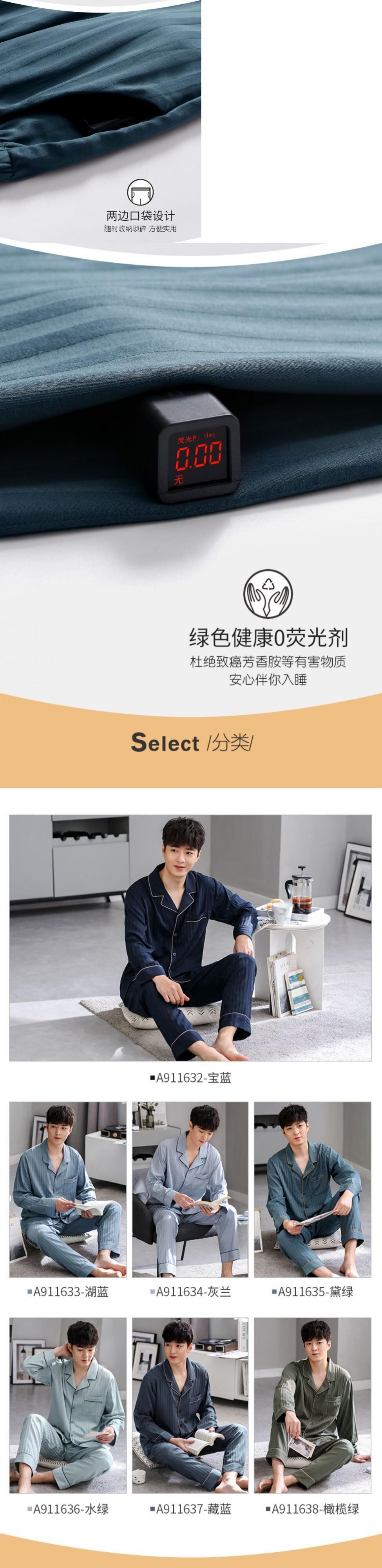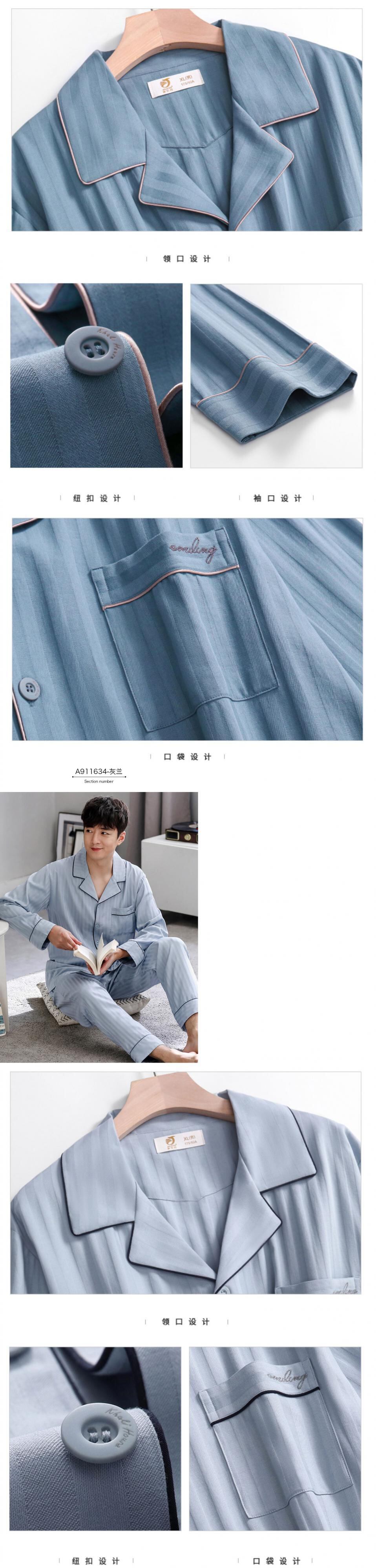 綿ガーゼパジャマメンズ春夏純綿長袖ホームサービス春秋秋薄綿スーツ jial535535994