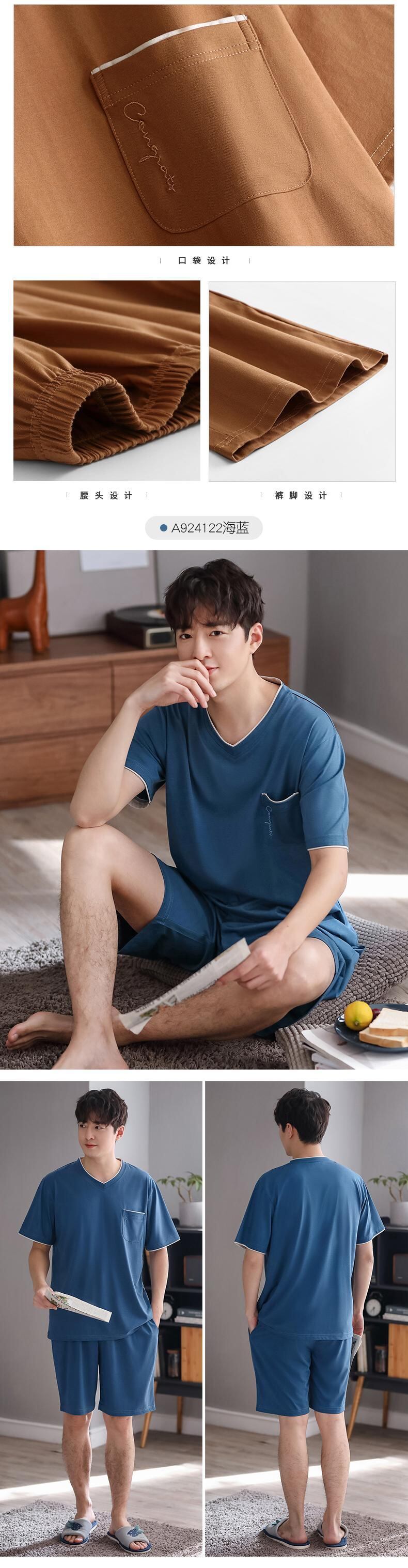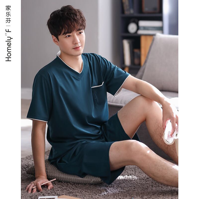 【ライクラ】カルフールパジャマメンズサマーコットン半袖ショーツホームサービスメンズサマー薄夏スタイル jial18685820114