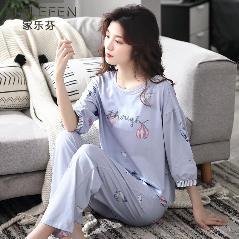 パジャマレディースコットン長袖春夏薄夏七分袖コットンホームサービスツーピーススーツ jial71162975282