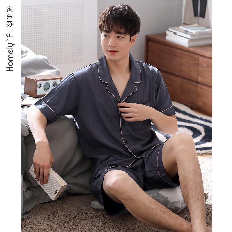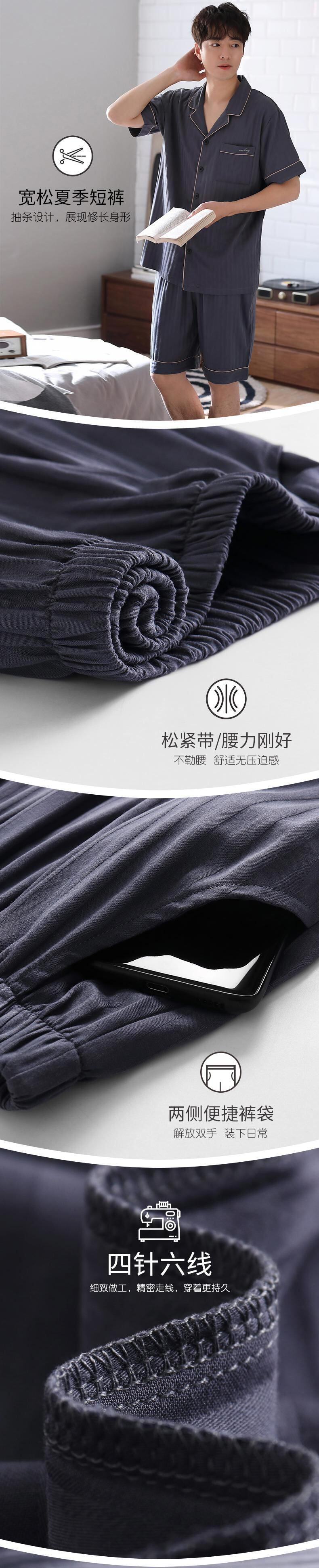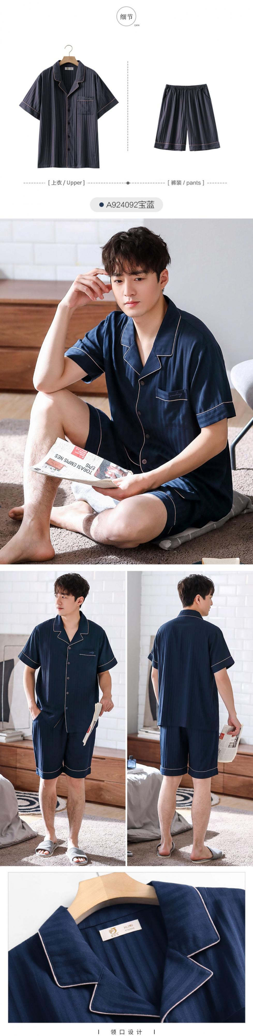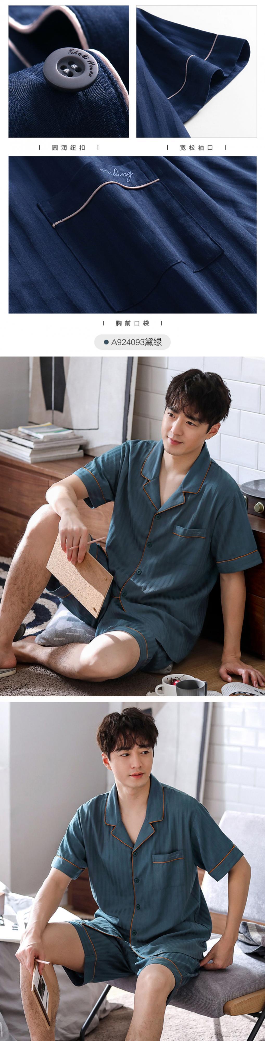 織り綿ガーゼパジャマメンズサマーコットン半袖ショーツホームサービスメンズサマー薄綿スーツ jial92538557035