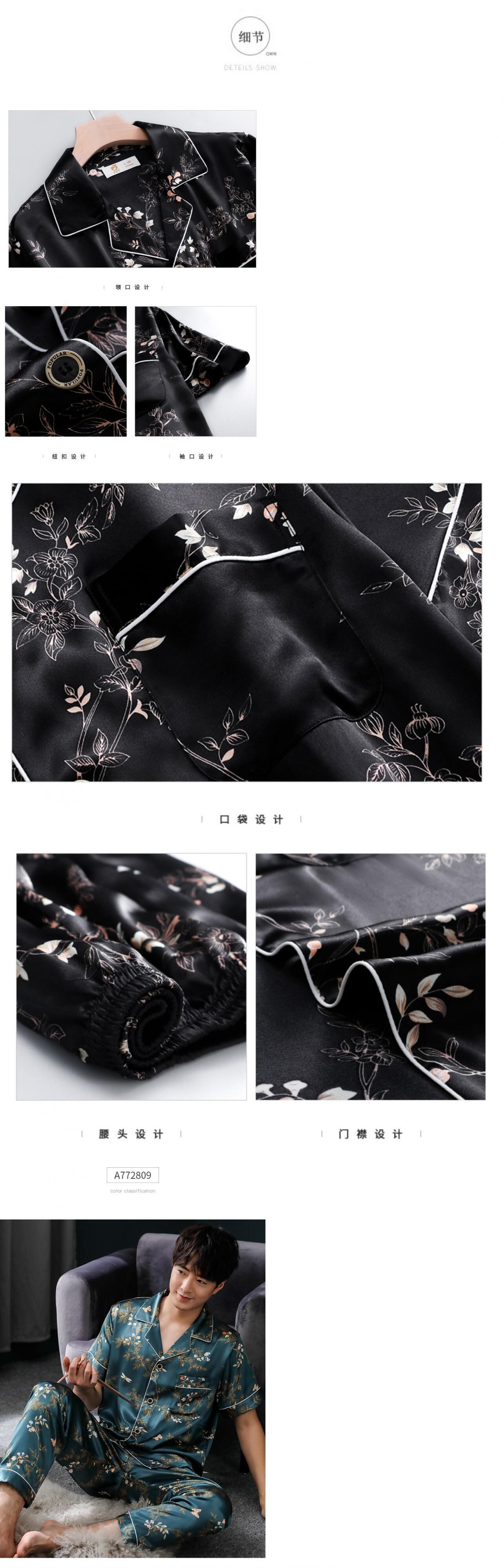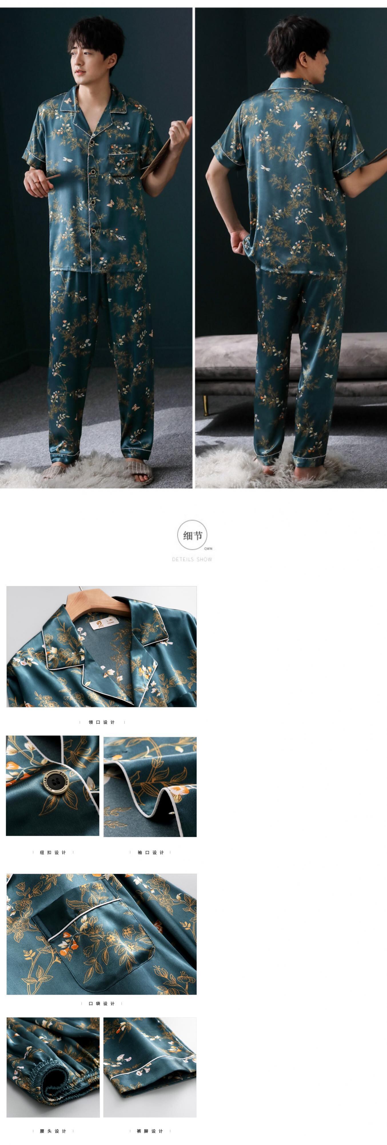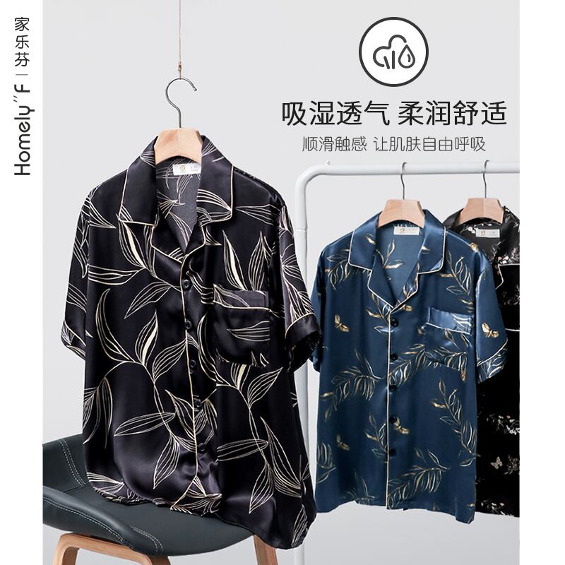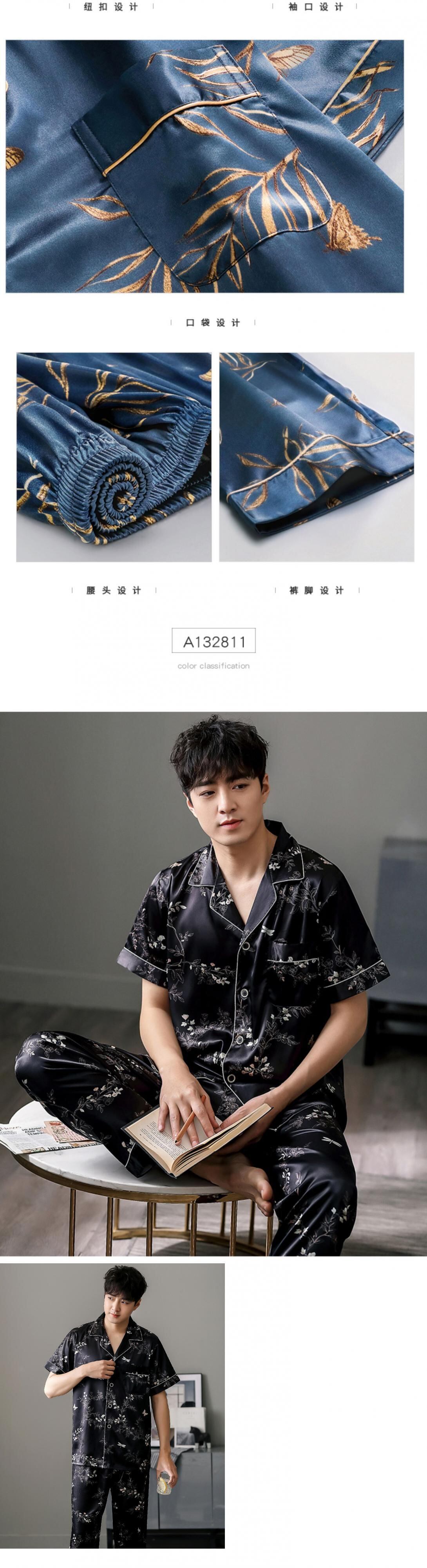 パジャマメンズサマーシルクアイスシルク半袖パンツホームサービスメンズサマー薄切り模造シルクパジャマスーツ jial31458441799