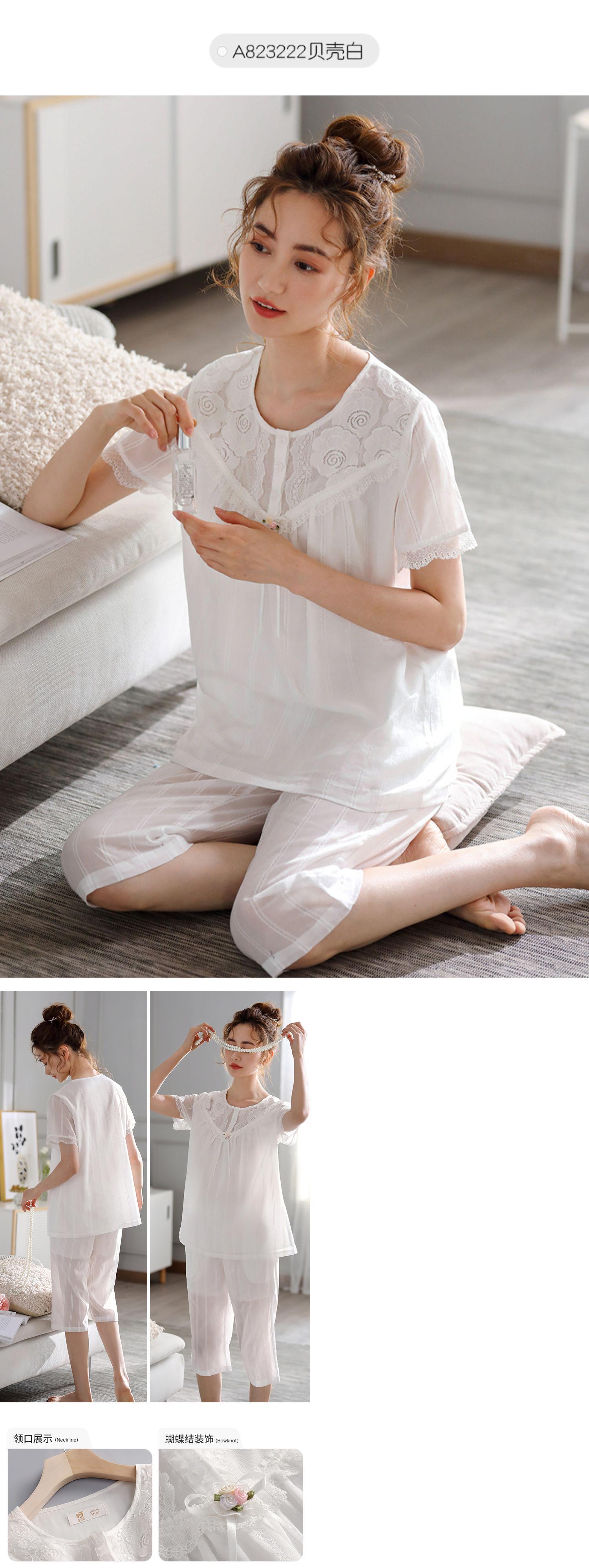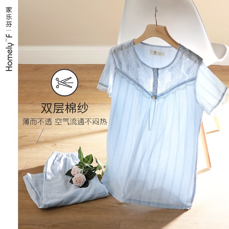 織り綿ガーゼパジャマ女性夏半袖クロップドパンツ純綿ホームサービス夏綿薄切りマザープラスサイズ jial11368481569