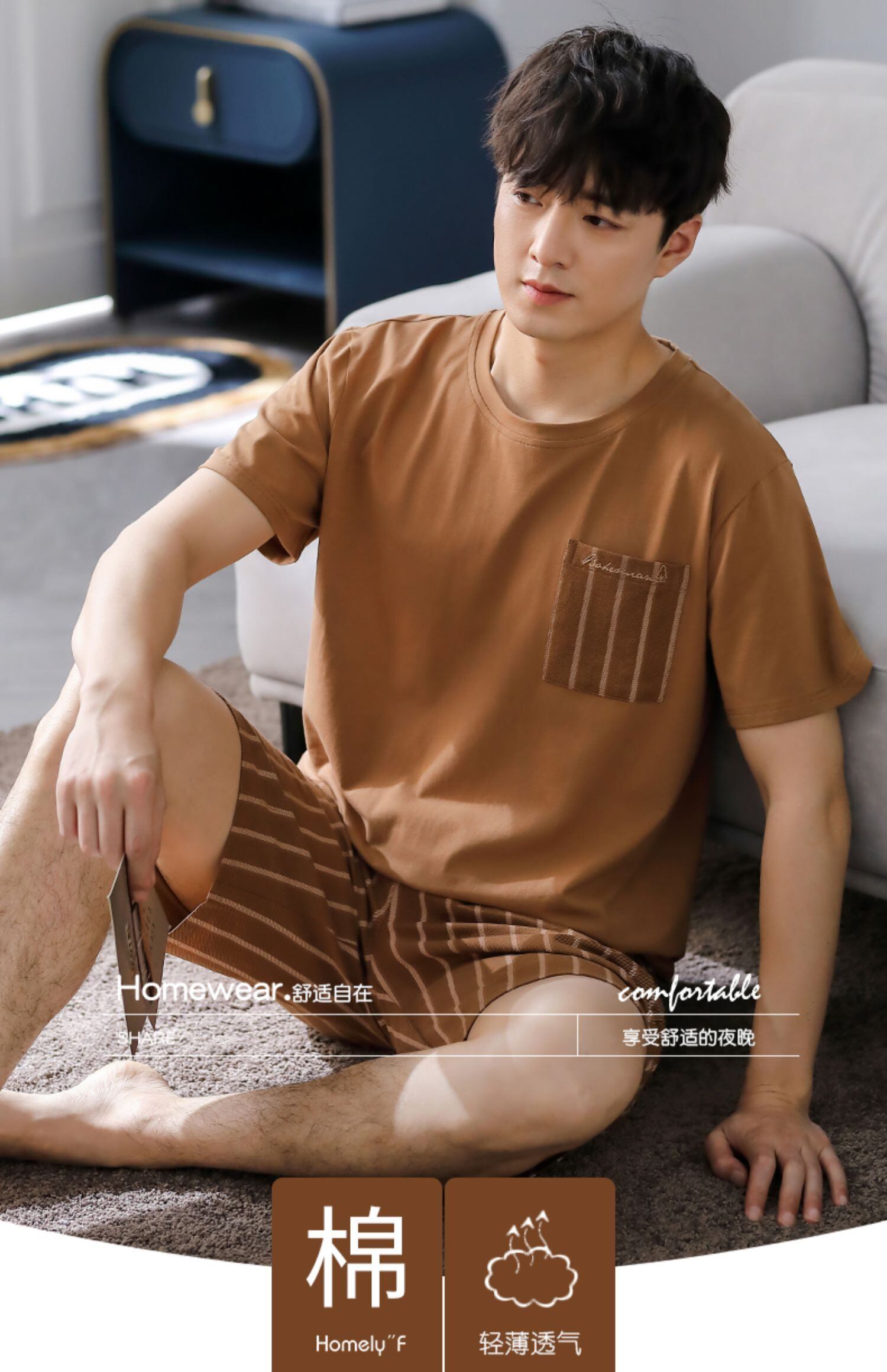 パジャマメンズサマーコットン半袖ショーツホームサービスメンズサマー薄手コットンカジュアルプラスサイズスーツ jial17174746434