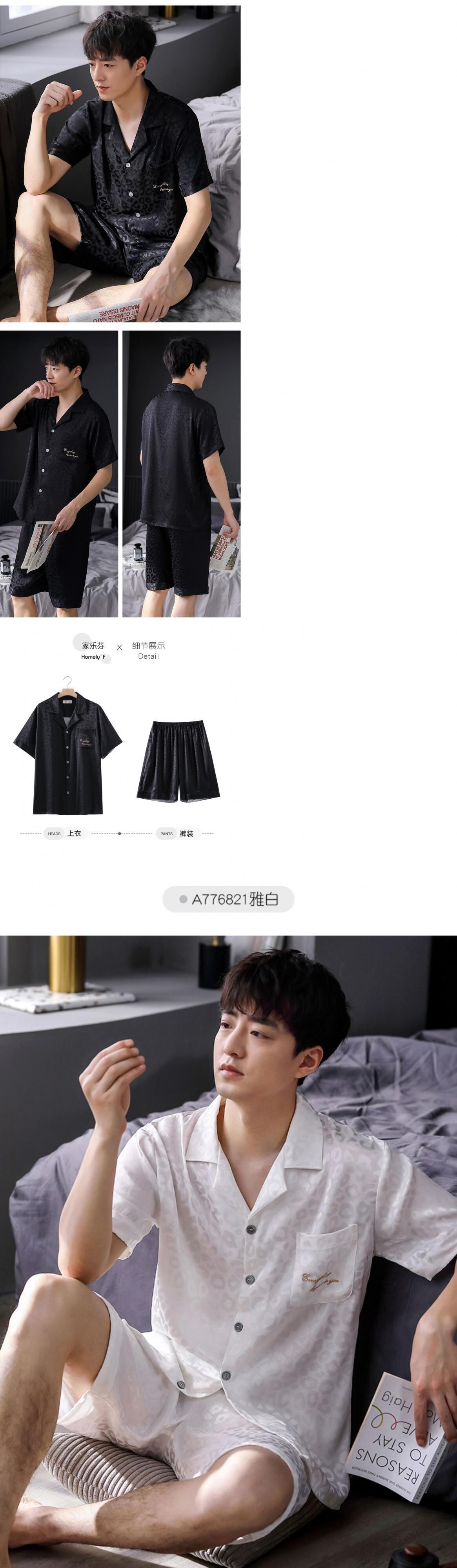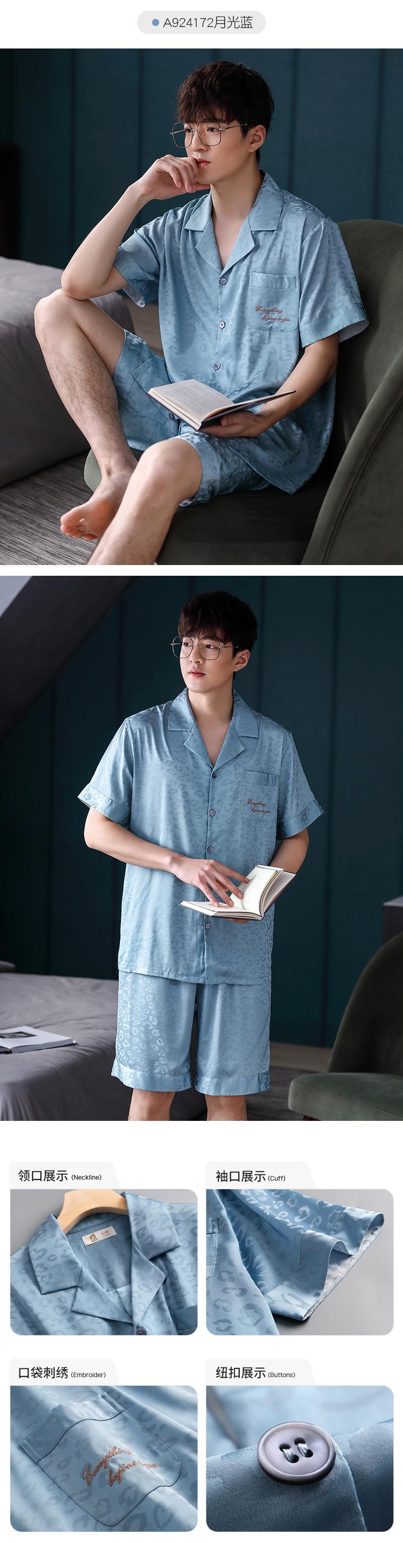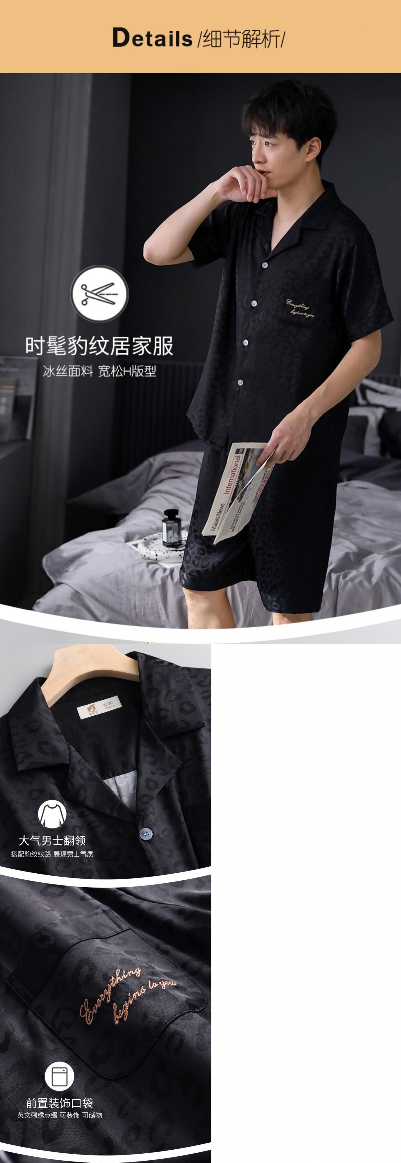 パジャマメンズサマーシルクアイスシルク半袖ショーツホームサービスメンズサマーシンシミュレーションシルクヒョウスーツ jial34075194141