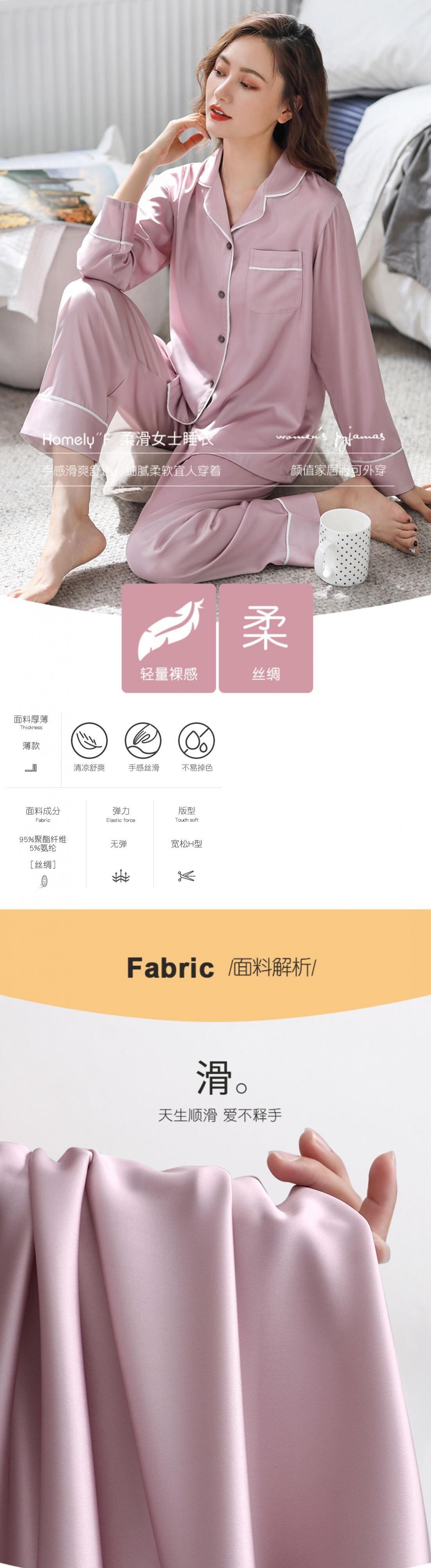 パジャマレディース春夏シルクアイスシルク長袖ホームサービス春秋秋薄切片人工シルクツーピーススーツ jial65865172673