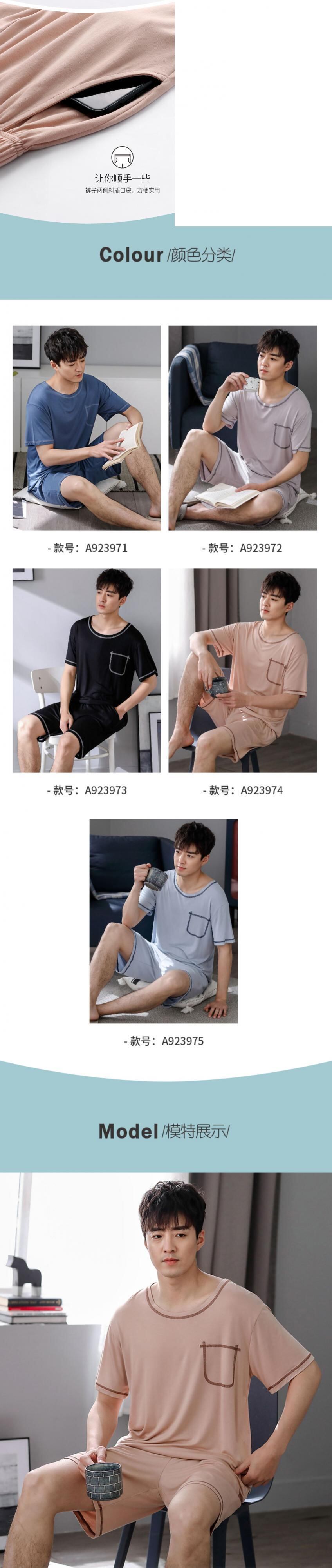 カルフールパジャマメンズサマーモーダルコットンシルク半袖ショーツホームサービスメンズサマーシンメンズスーツ jial90161650486