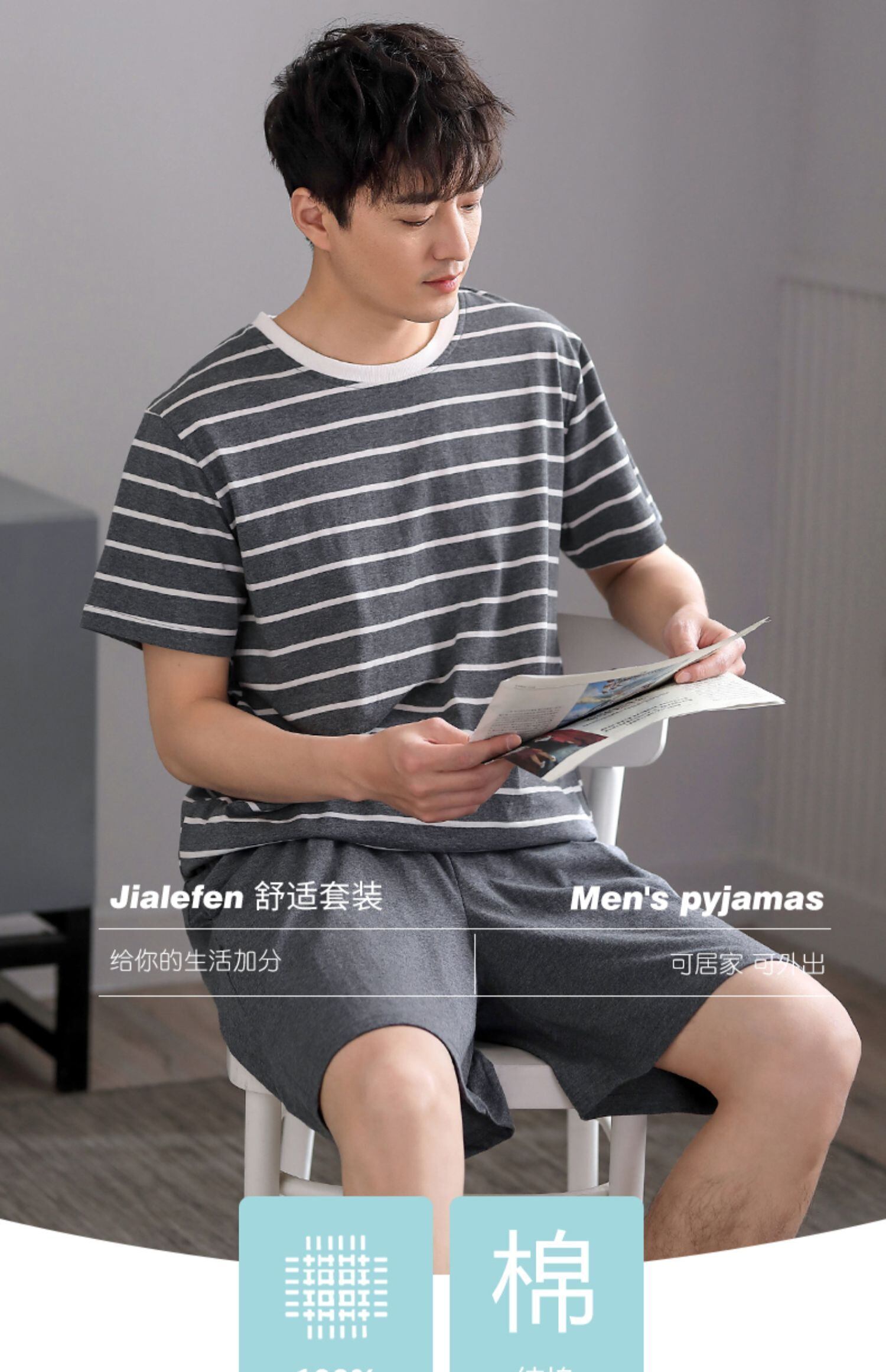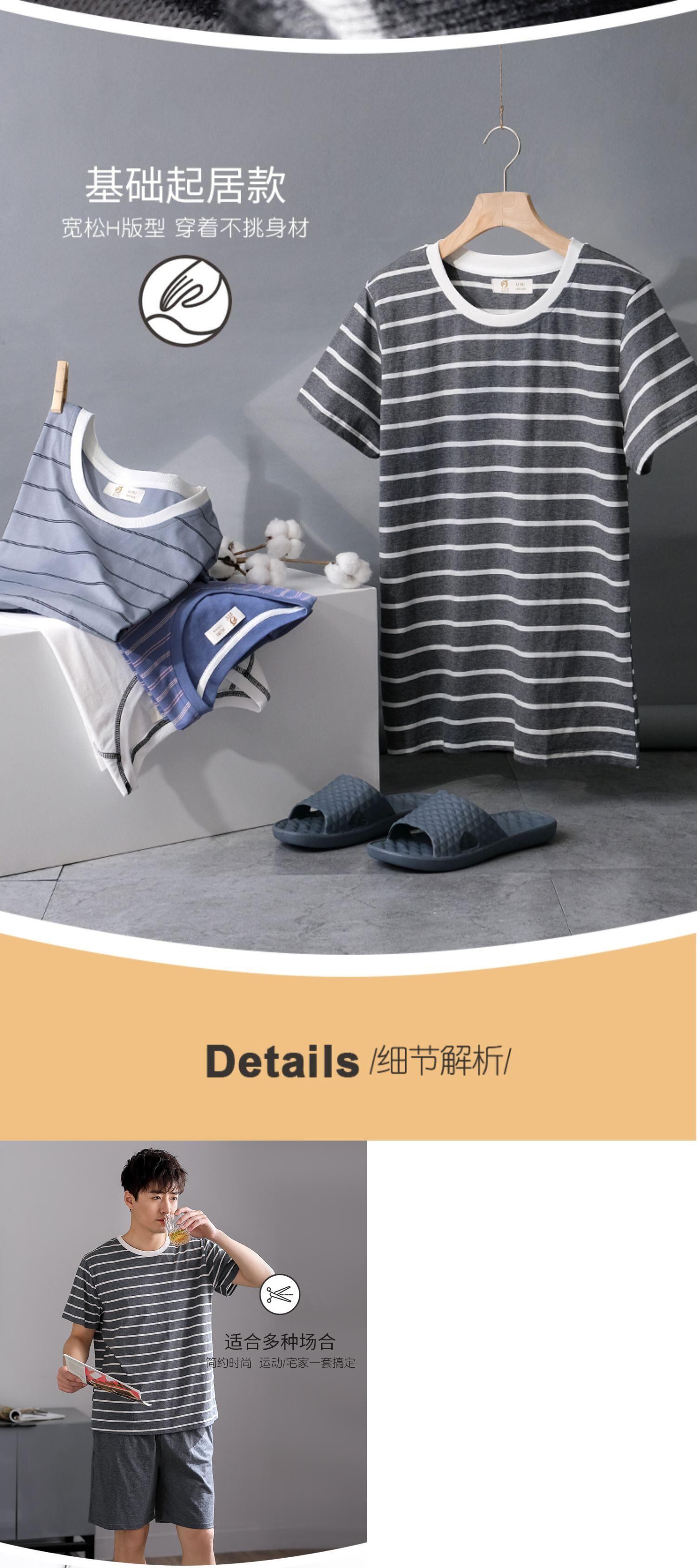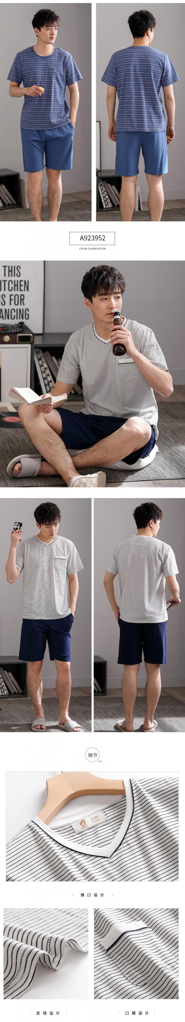 パジャマメンズサマーコットン半袖サマーホームウェアメンズメンズボーイズシンコットンカジュアルスーツ jial85051868933