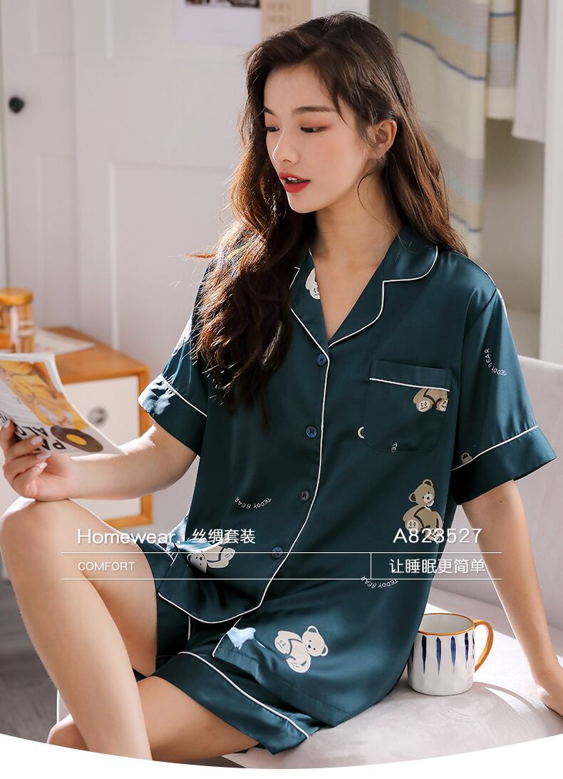 Jialefenパジャマレディース夏アイスシルク半袖ショーツホームサービス夏薄片シミュレーションシルクかわいいスーツ jial82658894362