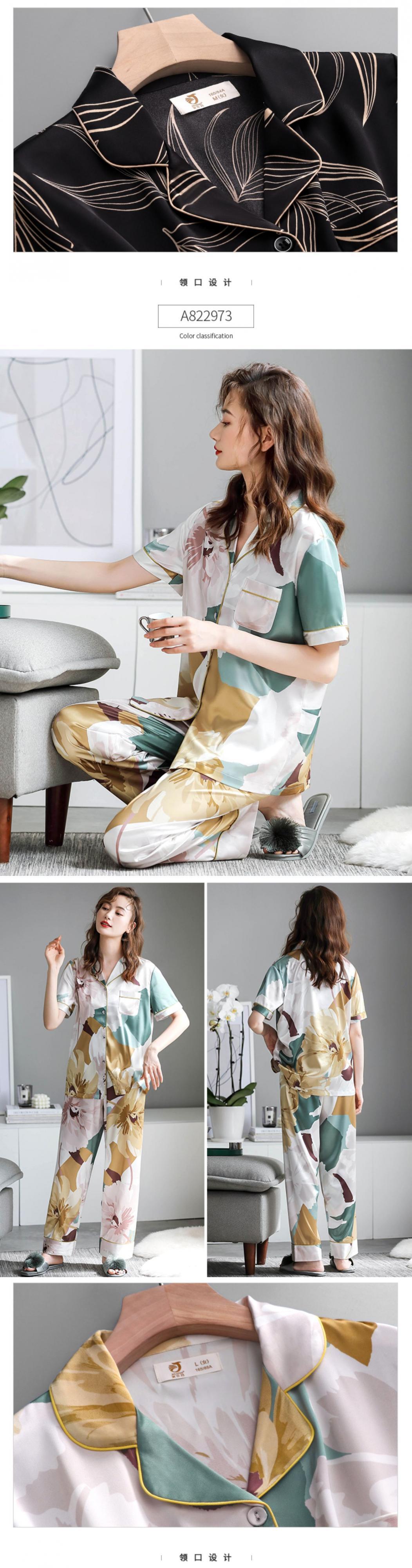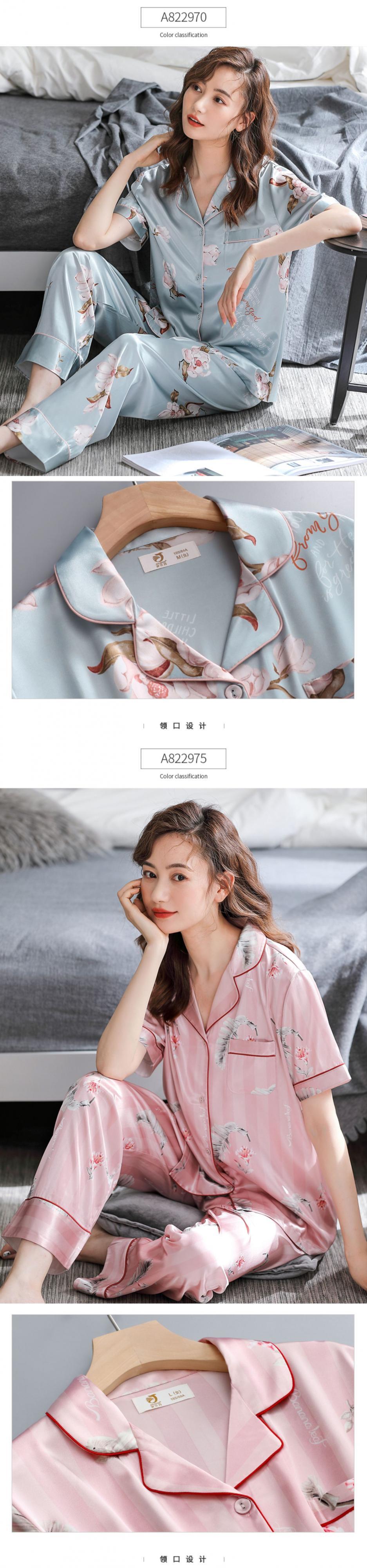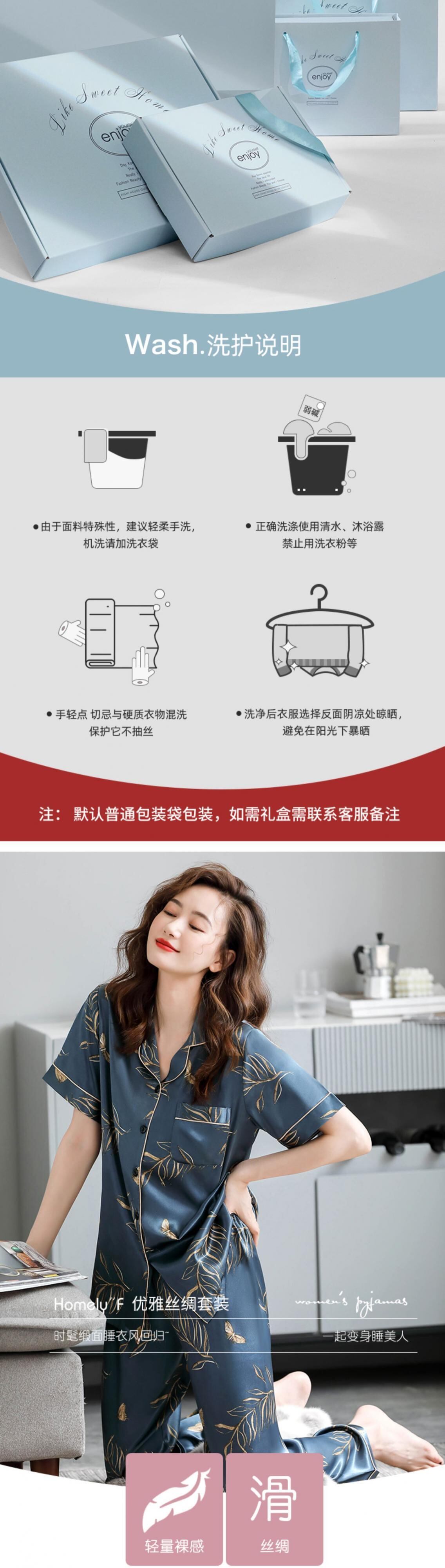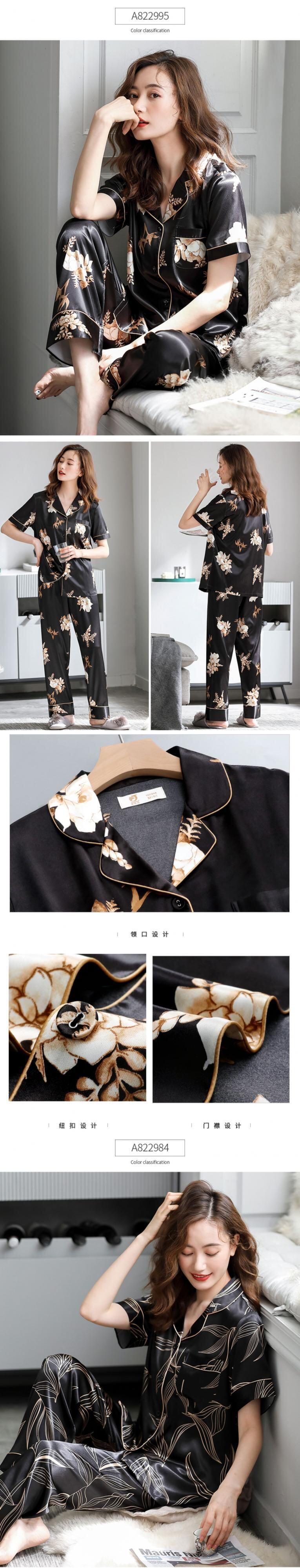 パジャマレディース夏シルクアイスシルク半袖パンツホームサービス夏薄人工シルク中年マザースーツ jial7416986619