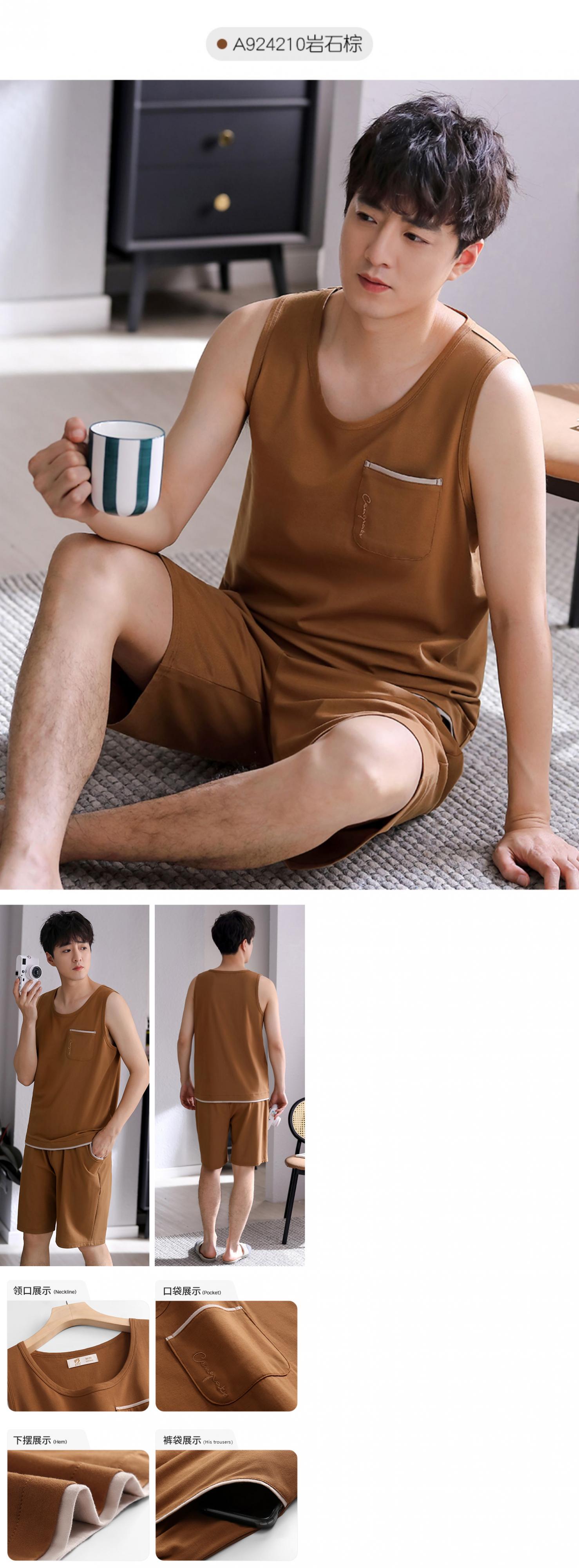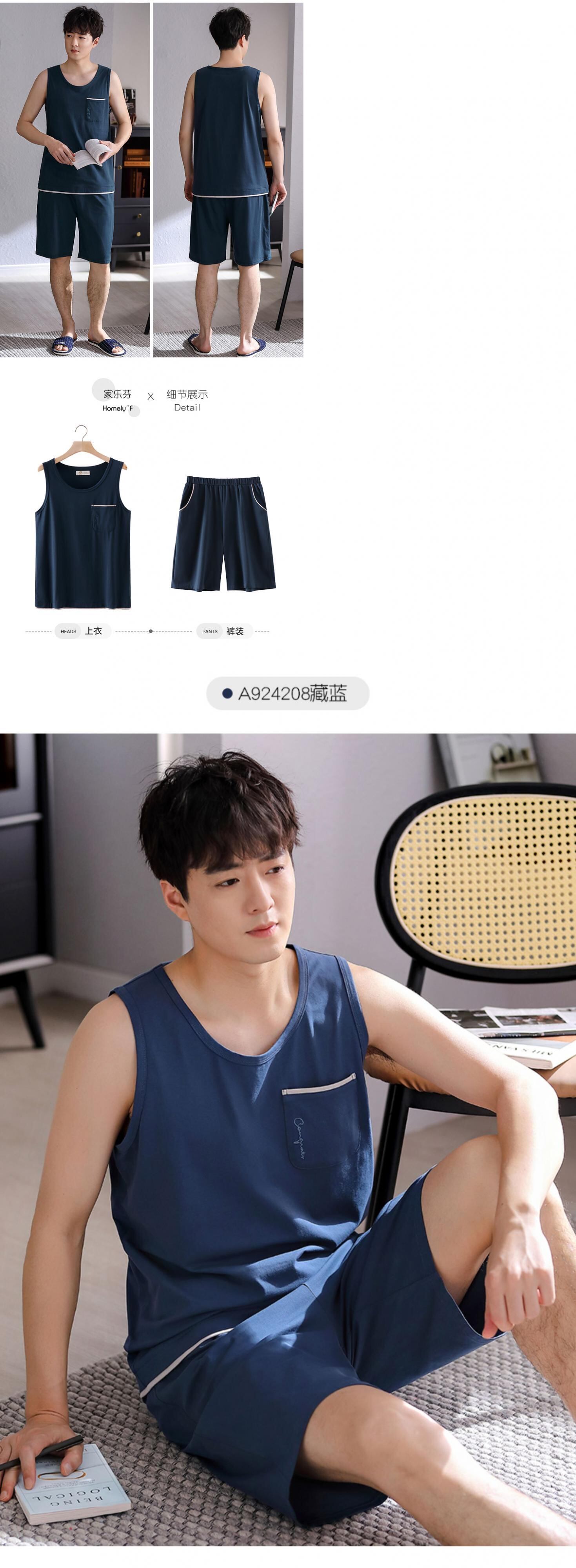 【ライクラコットン】パジャマメンズサマーコットンベストノースリーブショーツホームサービスサマーシンコットンスーツ jial23647318469
