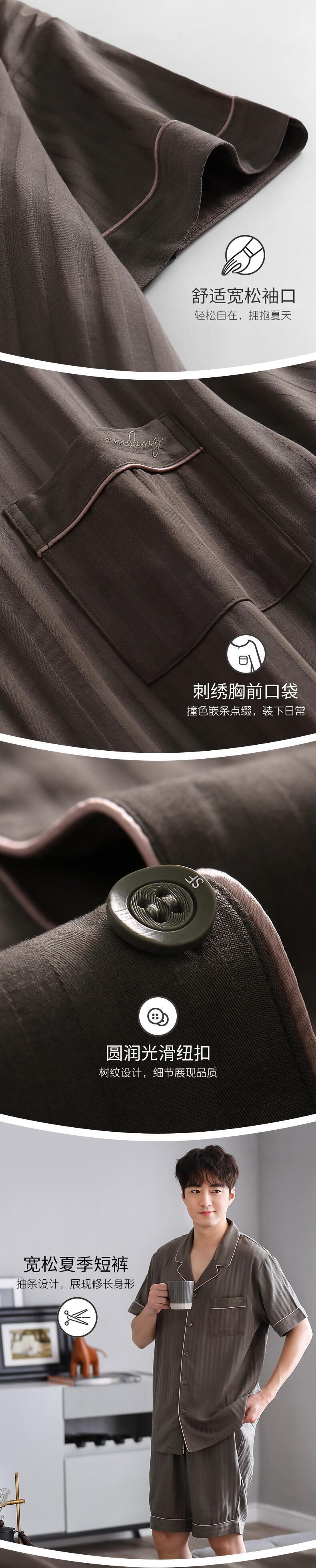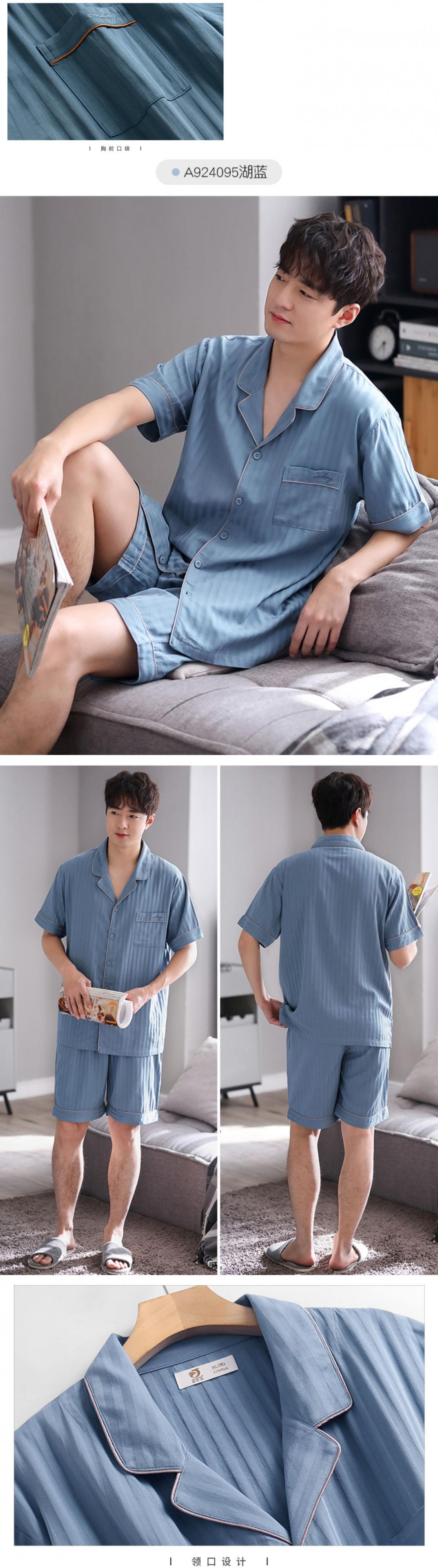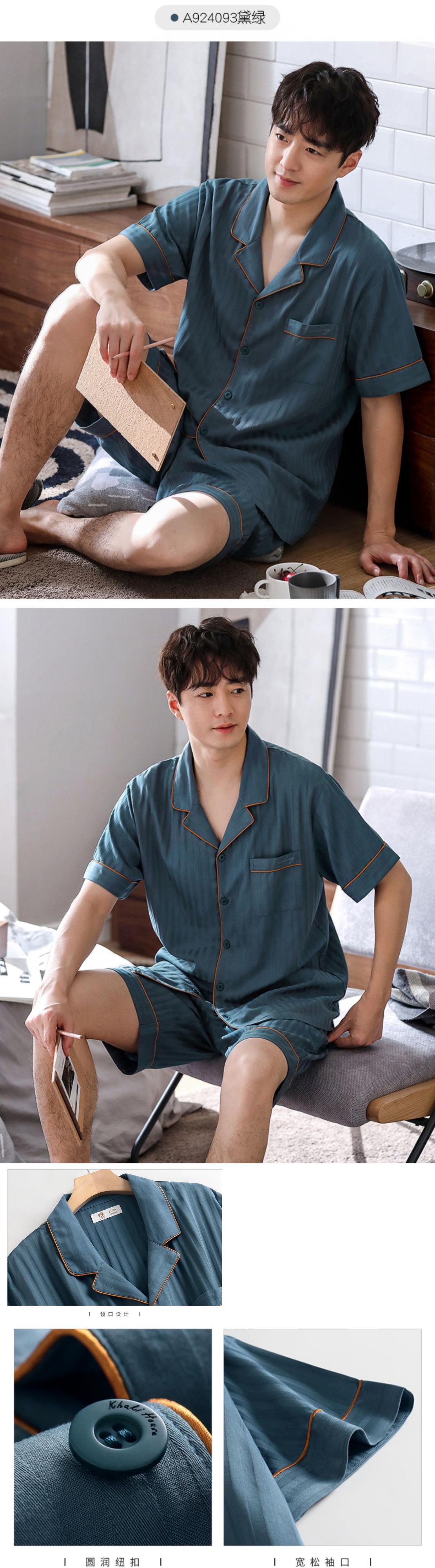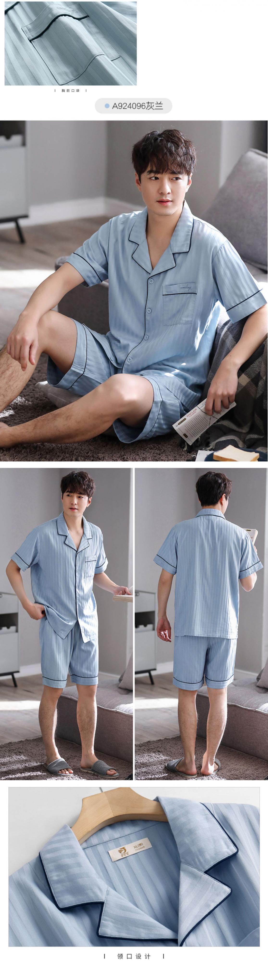 綿ガーゼパジャマメンズサマーコットン半袖ショーツカーディガンホームサービスメンズサマー薄綿 jial10381454516