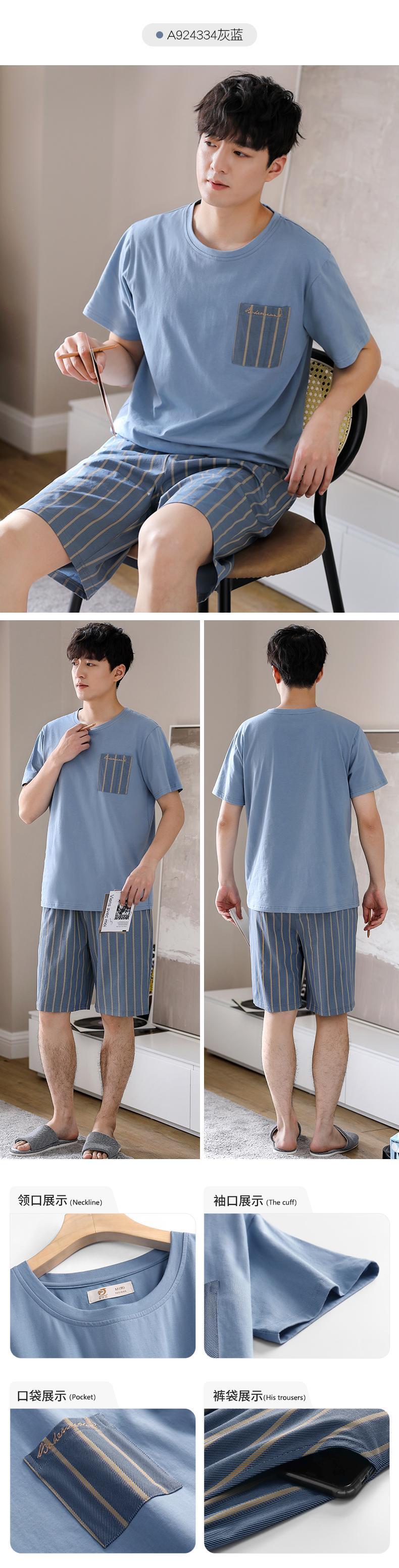 パジャマメンズサマーコットン半袖ショーツホームサービスメンズサマー薄手コットンカジュアルプラスサイズスーツ jial12298062565
