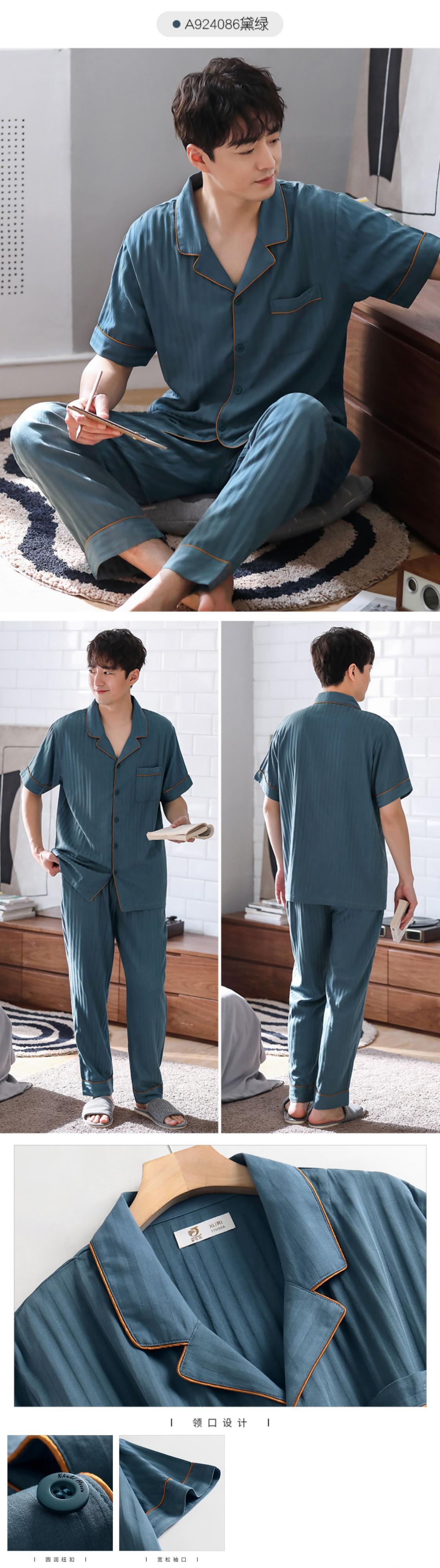 織り綿ガーゼパジャマメンズ夏綿半袖ズボンホームサービス夏薄綿サマースーツ jial19922105809