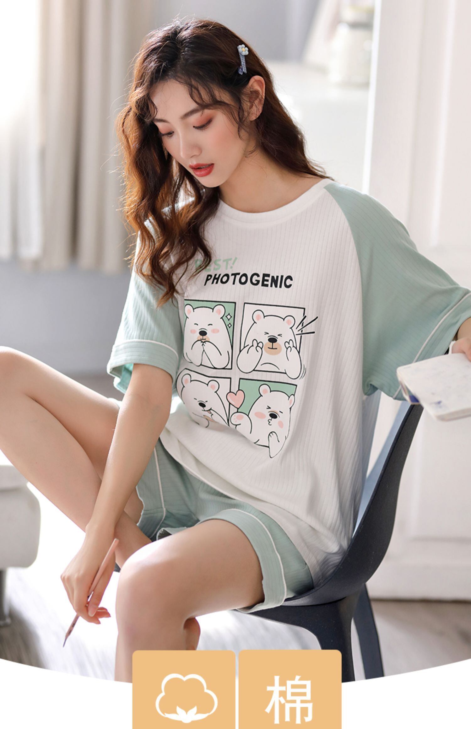 パジャマレディースサマーコットン半袖ショーツ2021年夏新しいかわいい学生ホームサービススーツ薄片 jial1232957846