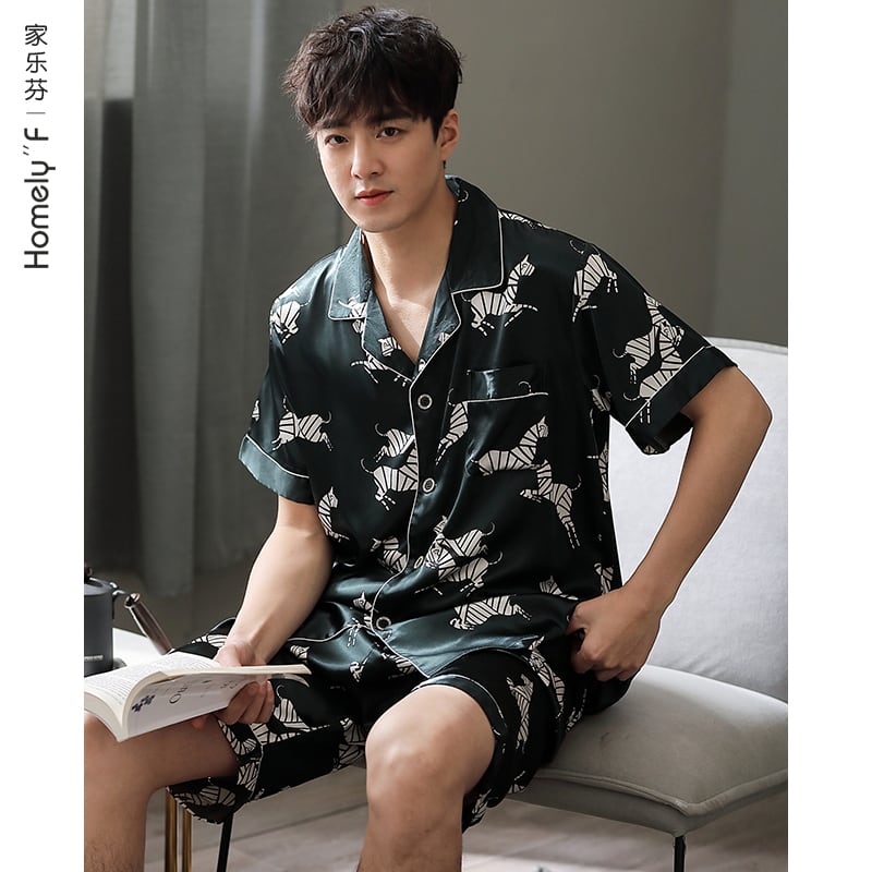 パジャマメンズサマーシルクアイスシルク半袖ショーツホームサービスメンズサマー薄切片模造シルクユーススーツ jial48733663484