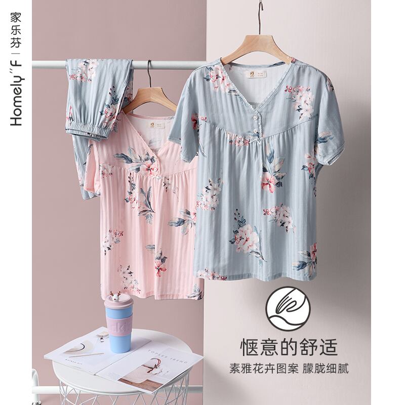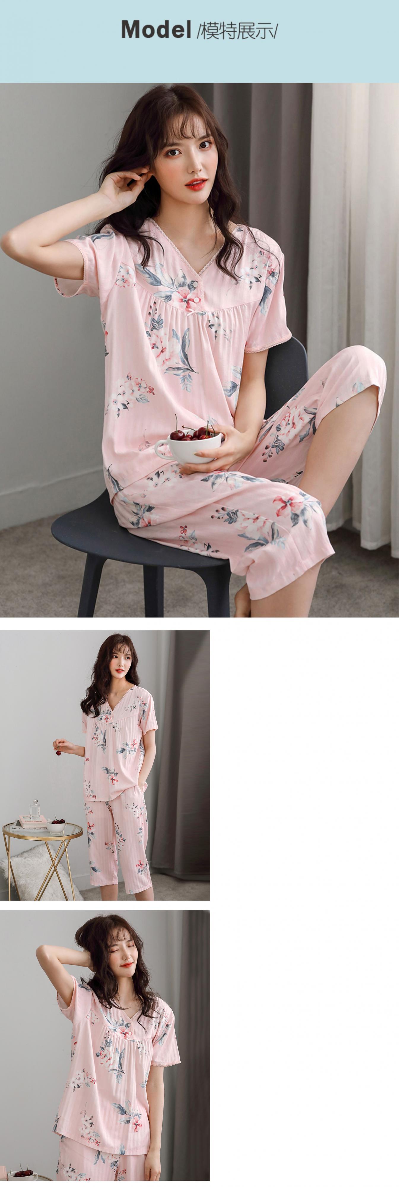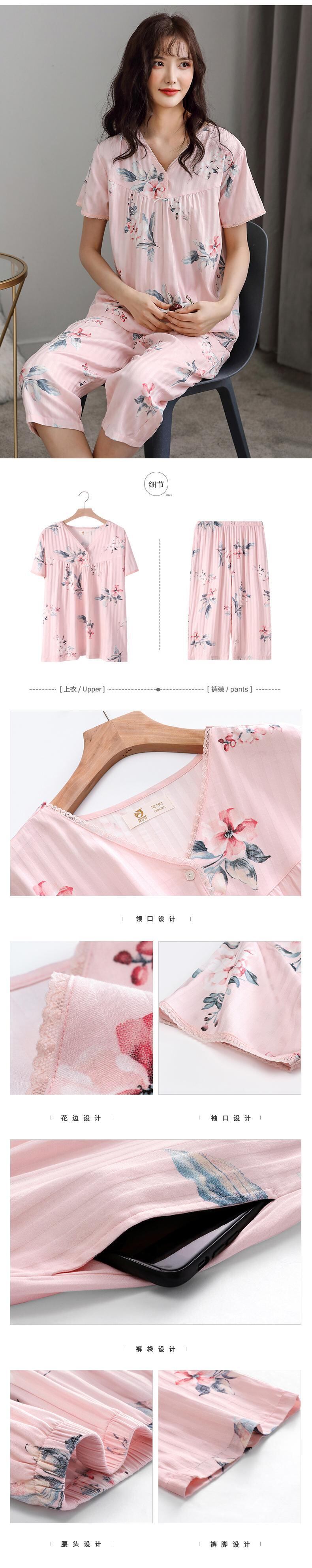 パジャマレディースサマーコットン半袖クロップドパンツホームサービスサマーシンコットンウーブンコットンミドルエイジドマザースーツ jial81907977746