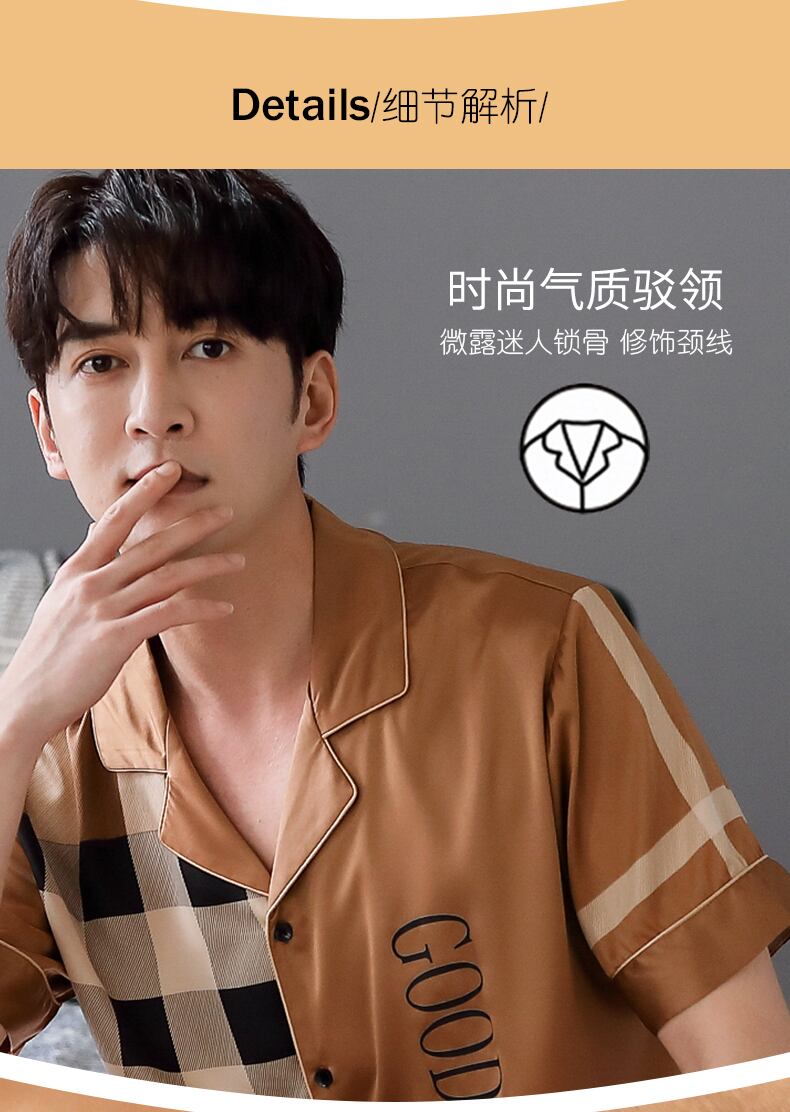 2021年新作パジャマメンズサマーシルクアイスシルク半袖パンツホームサービスサマー薄切片人工シルクハイエンド jial10173424966