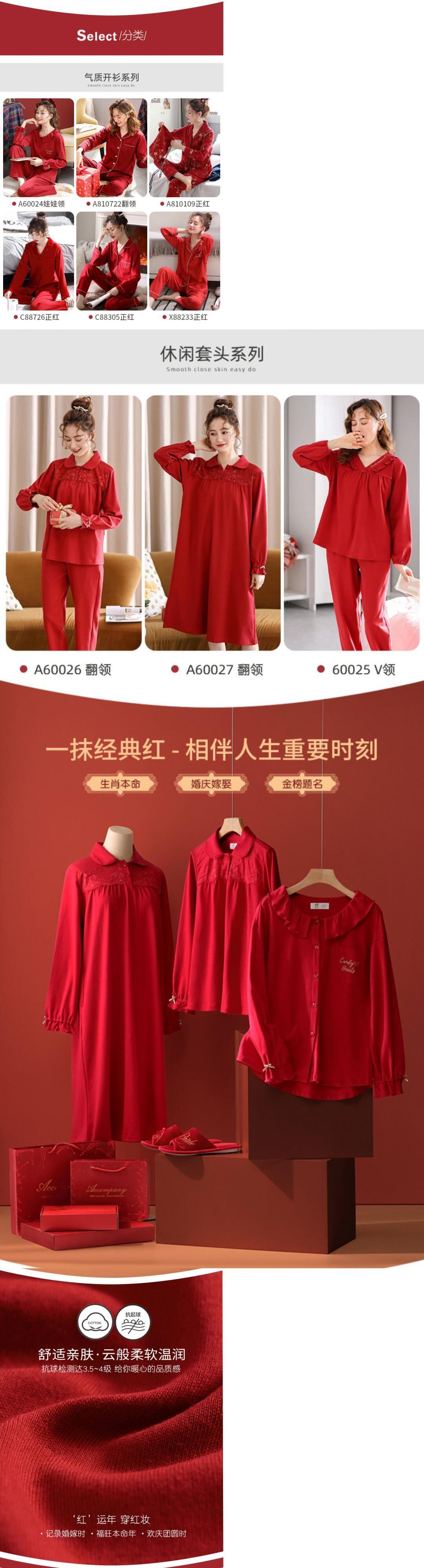 純綿長袖ホームサービス綿のパジャマ女性の春と秋のモデル牛の秋と冬の結婚式のプラスサイズの出生年赤年 jial75565945729