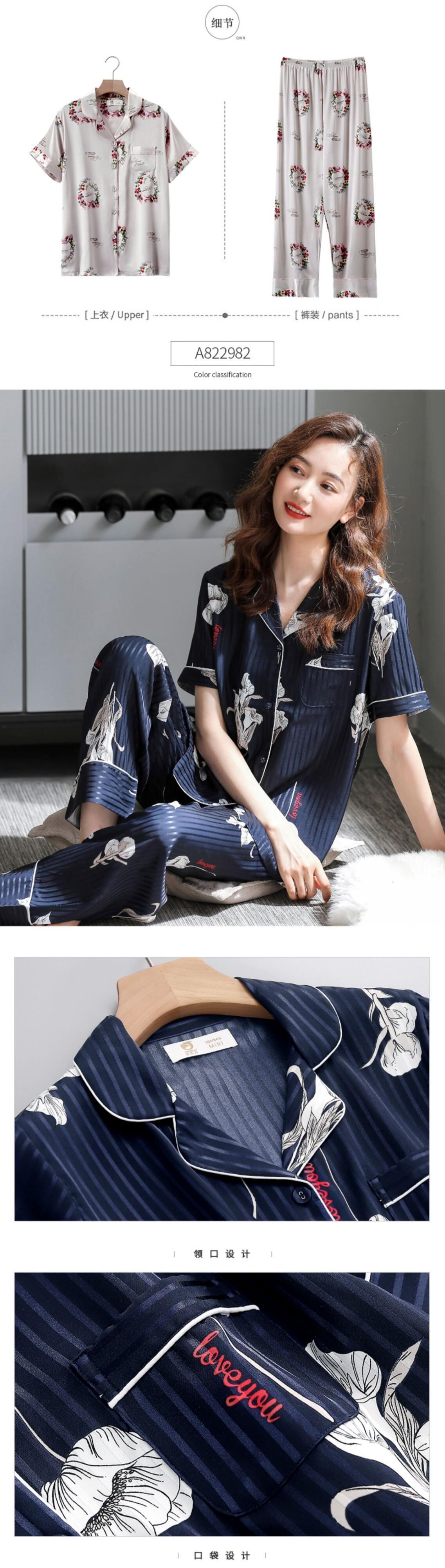 パジャマレディース夏シルクアイスシルク半袖パンツホームサービス夏薄切りシミュレーションシルクプラスサイズスーツ jial44819099454