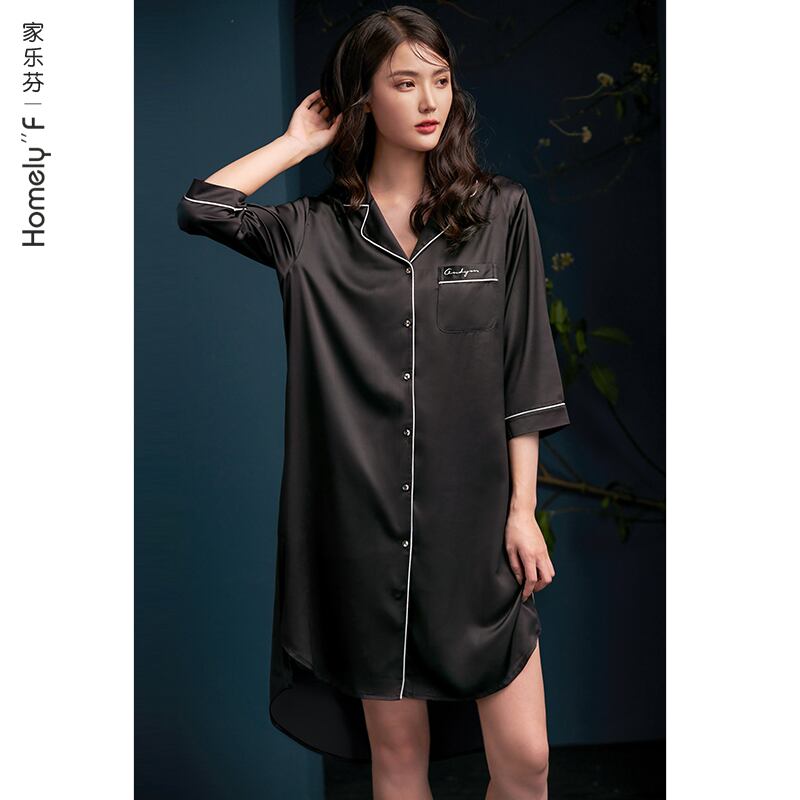 ネグリジェパジャマシルクサマーアイスシルク七分袖薄手のカーディガンシャツサマーイミテーションシルクロングスカート jial65045045412