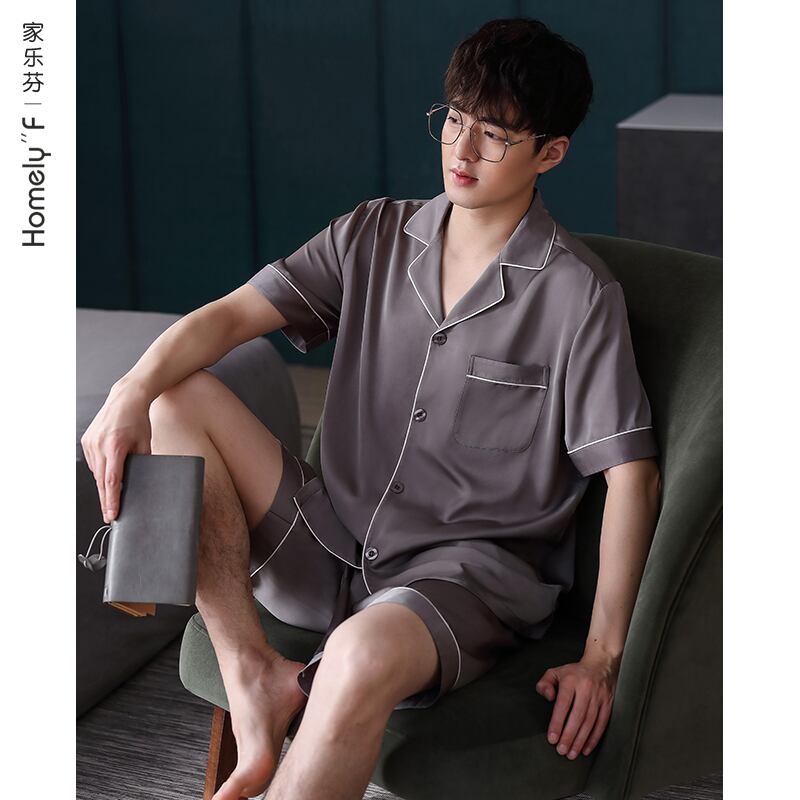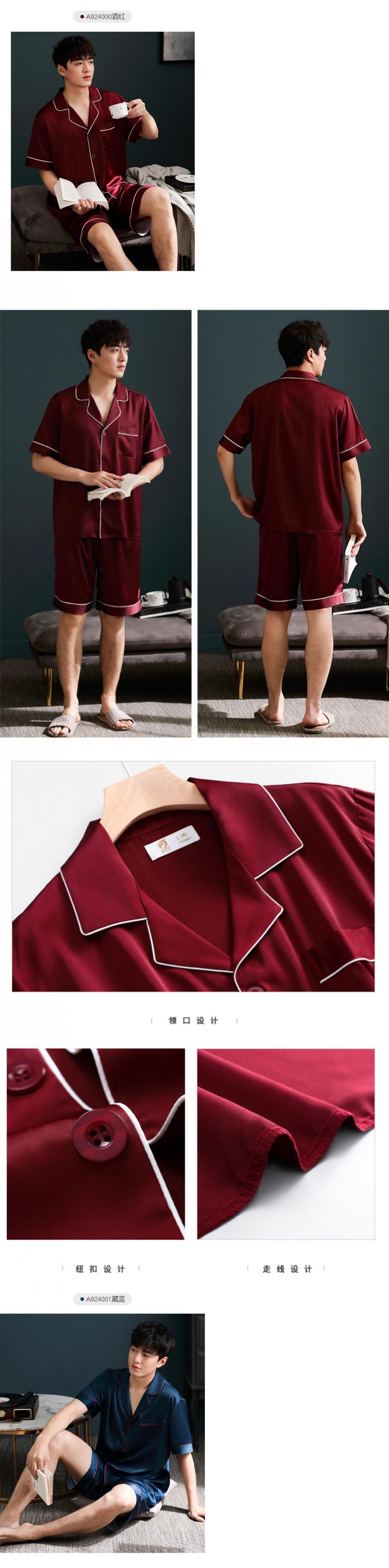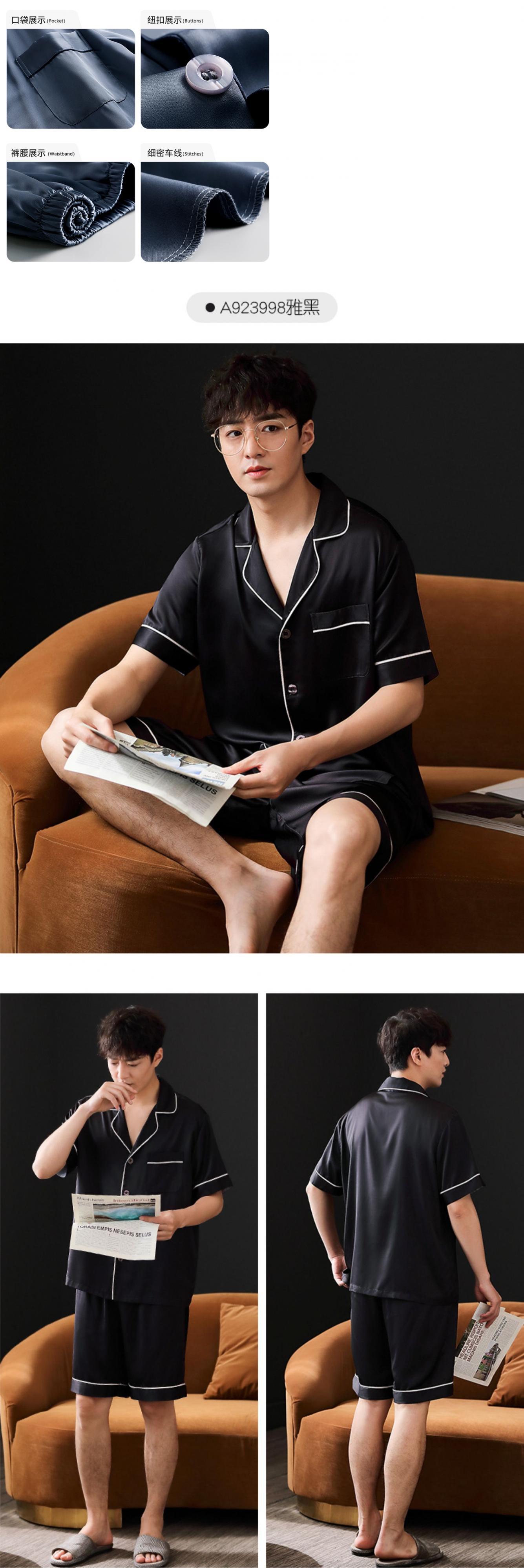 2021年新作パジャマメンズサマーアイスシルク半袖ショーツサマーシルクホームサービスメンズシミュレーションシルク薄片 jial7218416641