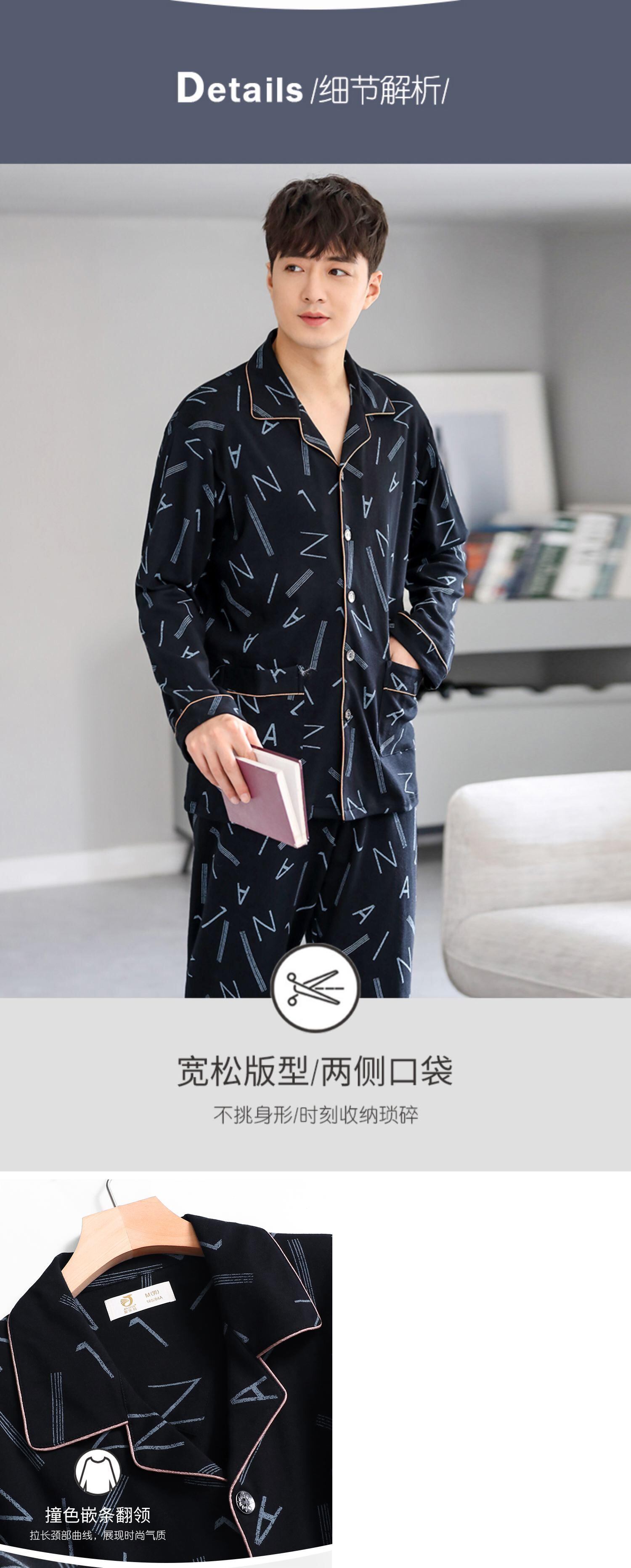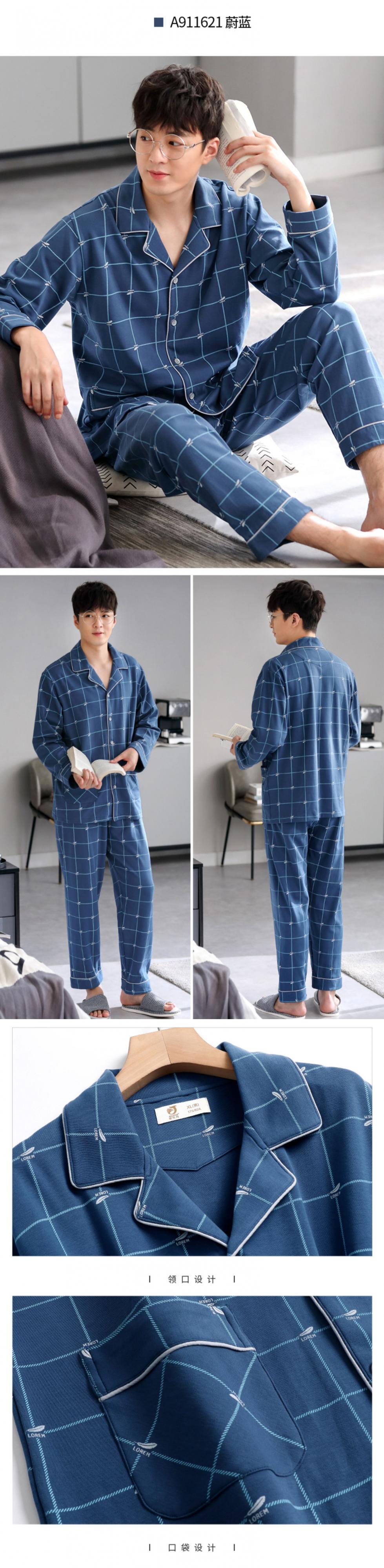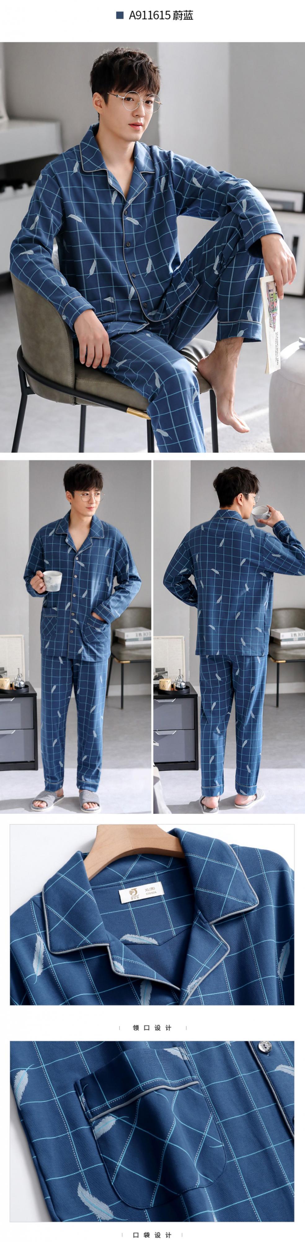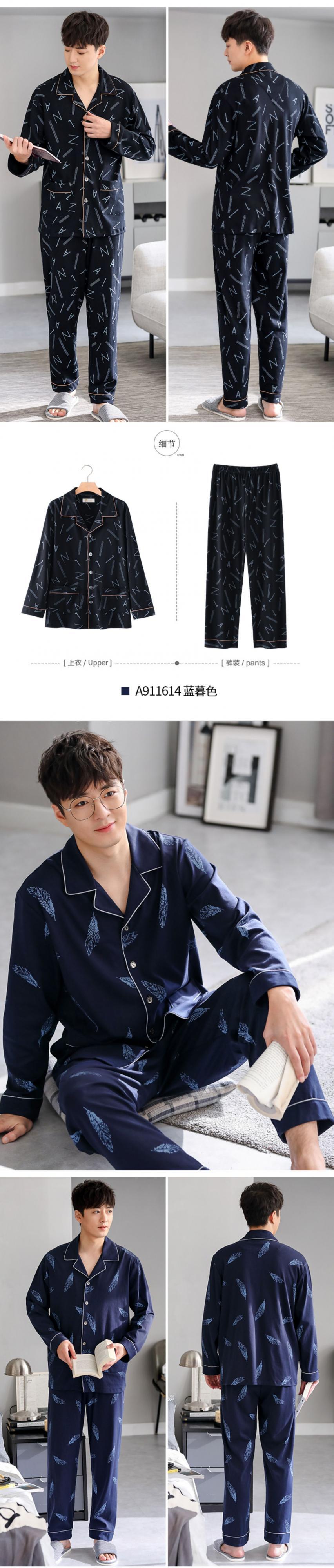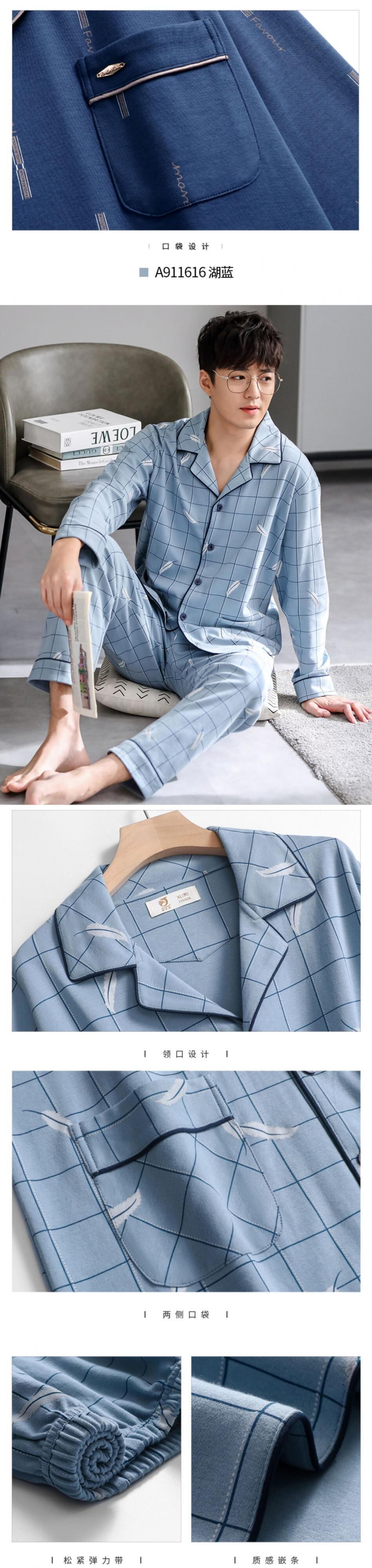 パジャマメンズ秋・春・秋モデル、秋綿長袖ホームウェア、メンズモデル、メンズ秋冬モデル、薄手コットンスーツ jial58915648525
