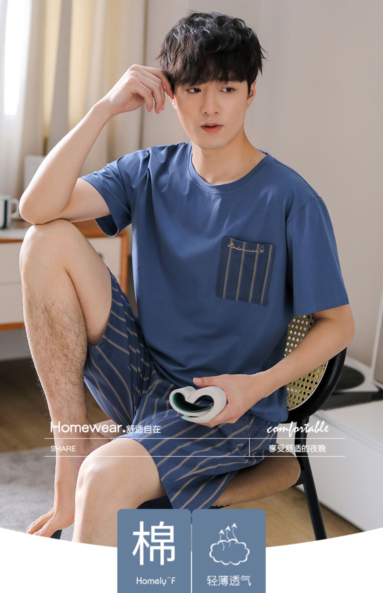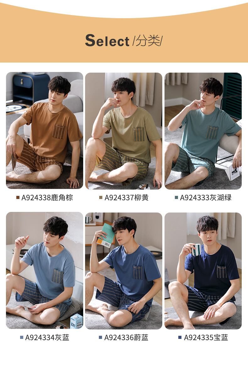 パジャマメンズサマーコットン半袖ショーツホームサービスメンズサマー薄手コットンカジュアルプラスサイズスーツ jial20628790397