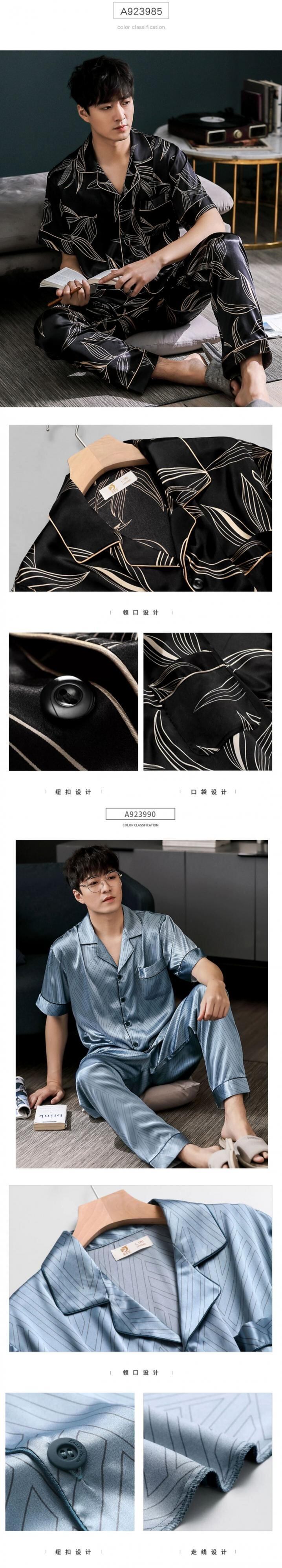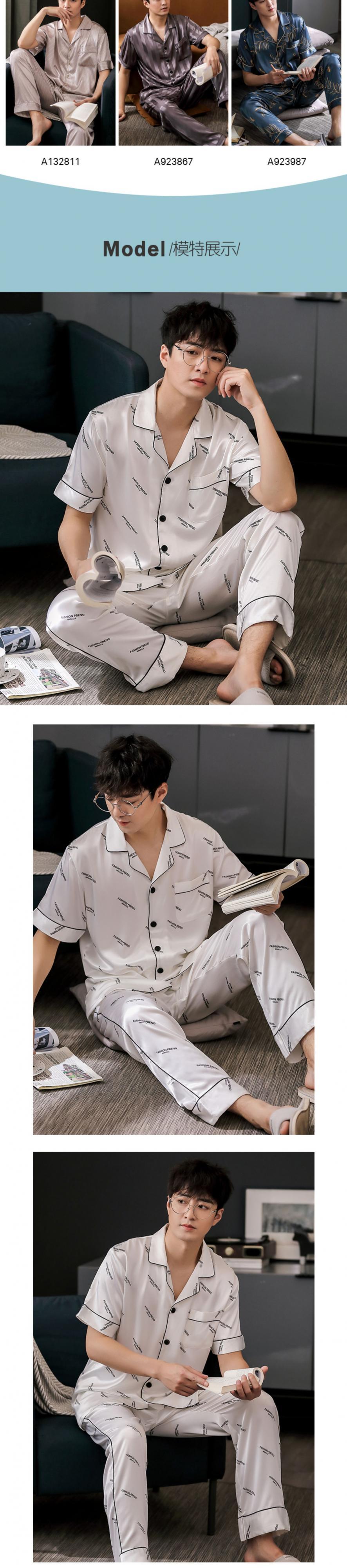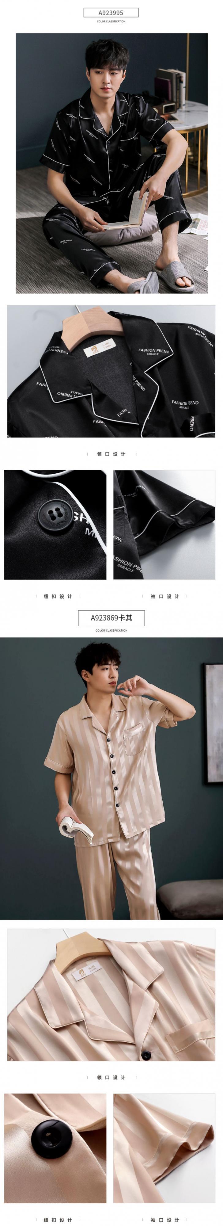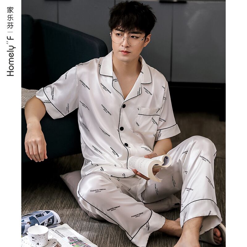 Jialefenパジャマメンズサマーシルクアイスシルク半袖パンツホームサービス夏薄切りシミュレーションシルクスーツ jial70429918499
