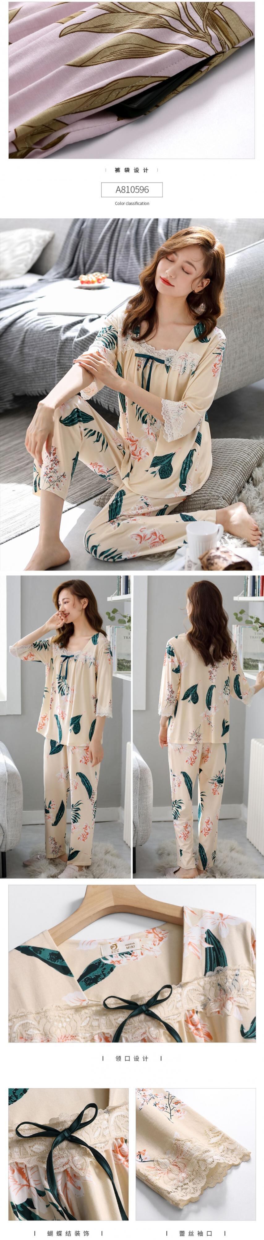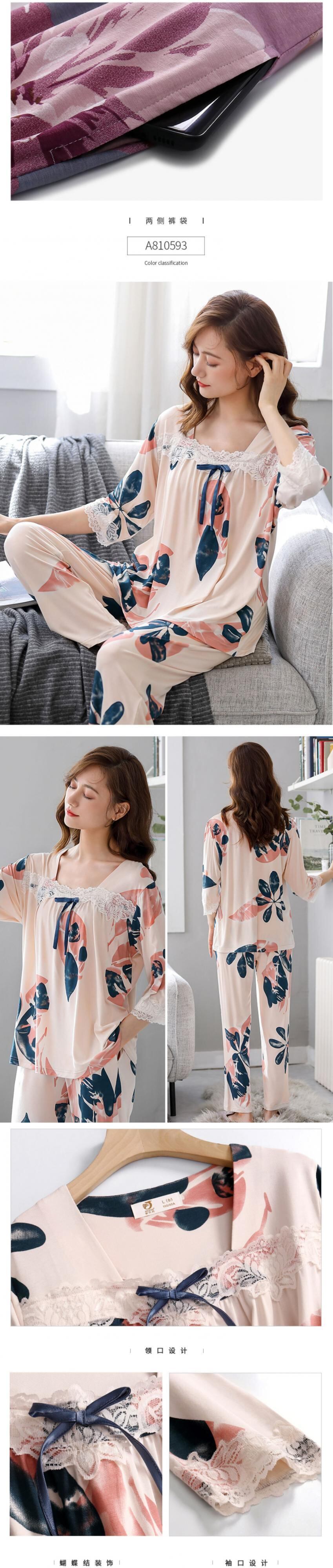 パジャマの女性の春と秋のモデル秋の七分袖モーダル春と夏の薄いアイスシルク中年の母親のホームサービススーツ jial53434300915