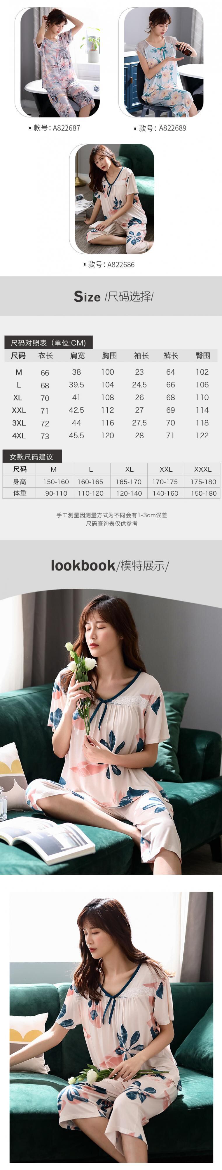 パジャマレディースサマー半袖ショーツモーダルコットンシルクサマーシンホームサービス中年マザーツーピーススーツ jial11525948456