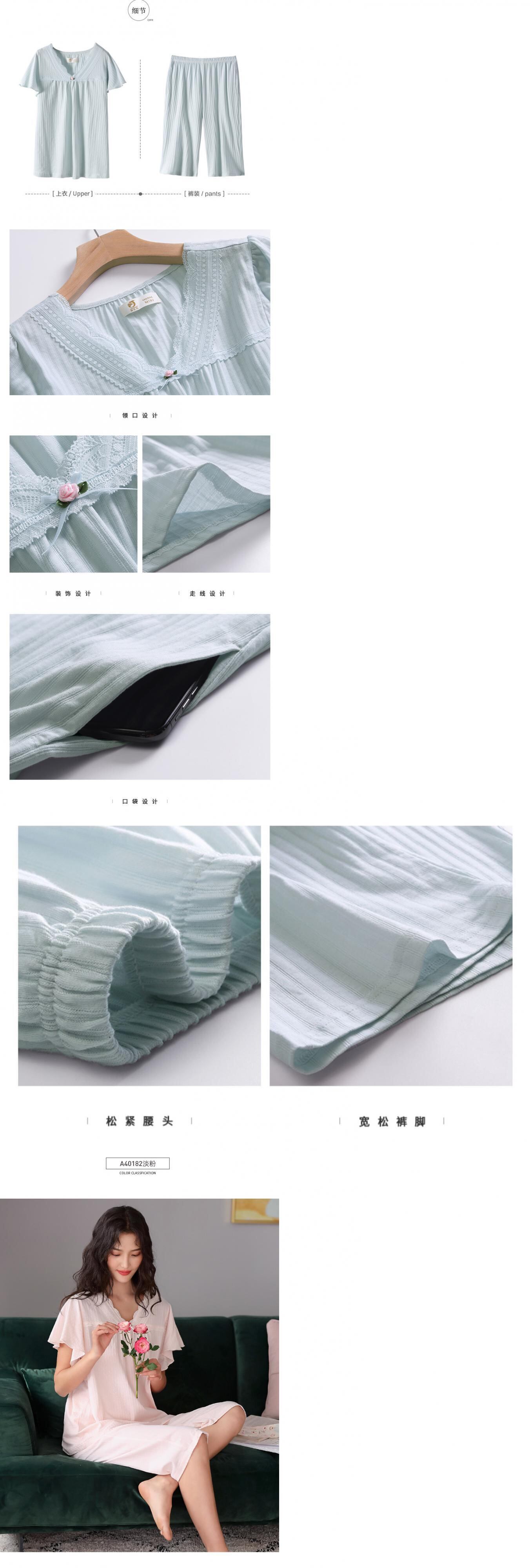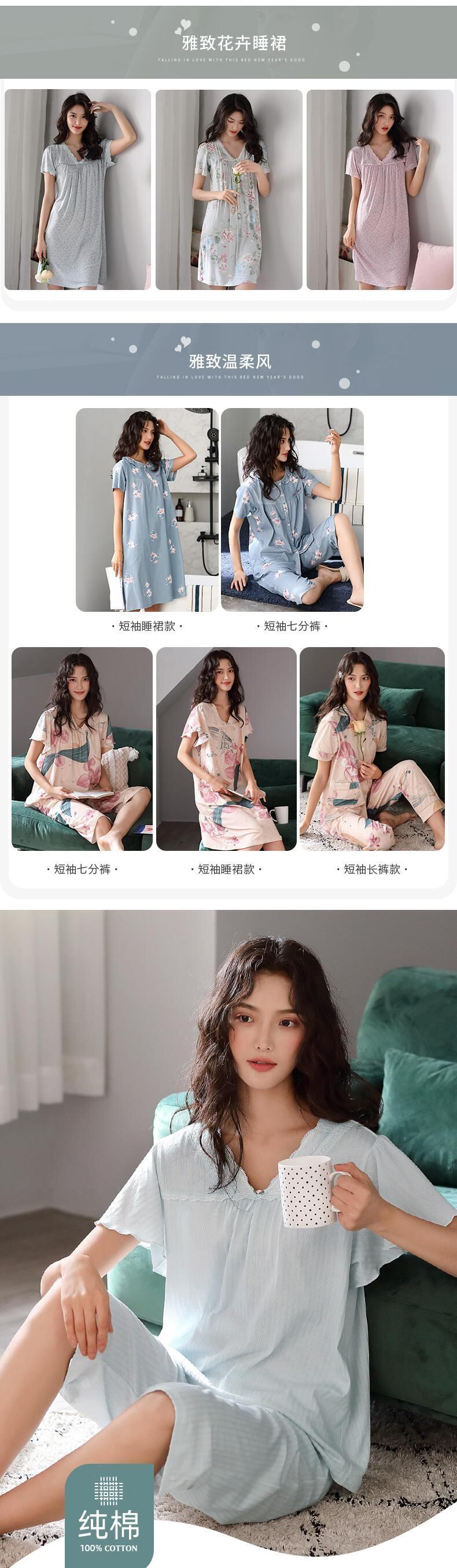 パジャマレディースサマーコットン半袖ショーツホームサービスサマー薄手コットン中年マザーツーピーススーツ jial64798445500