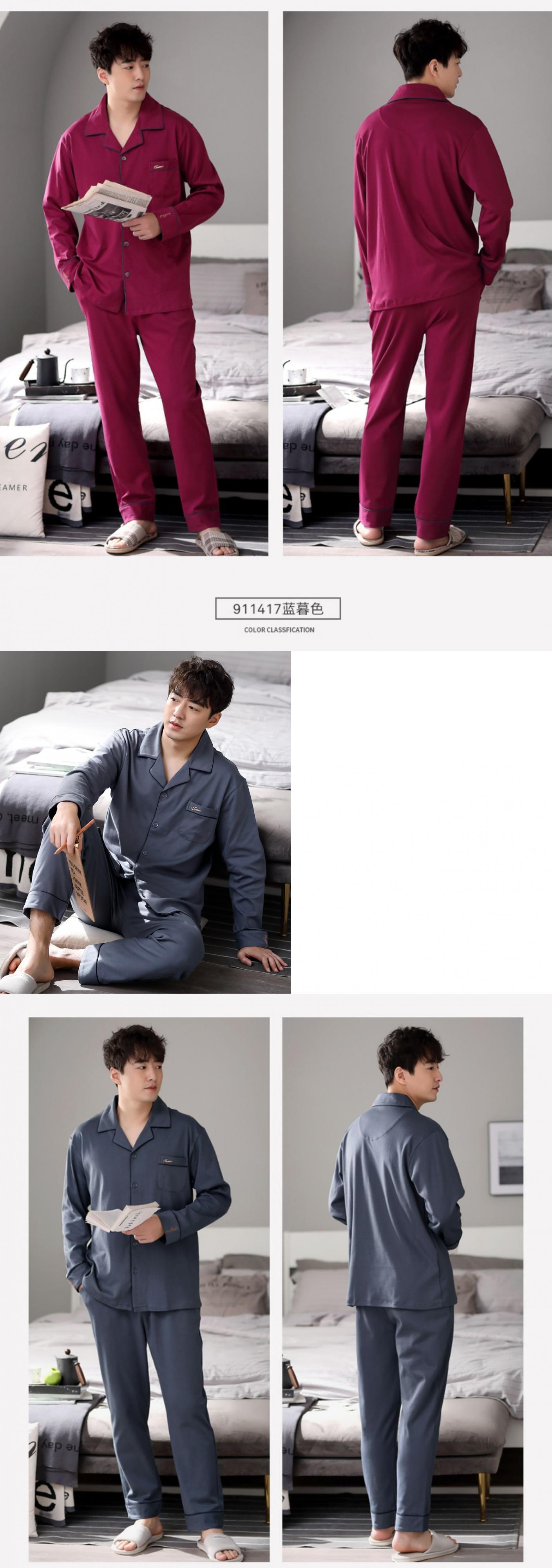 パジャマメンズ春秋モデル秋コットン長袖ホームサービスメンズコットン春夏薄赤スーツ jial93421591309