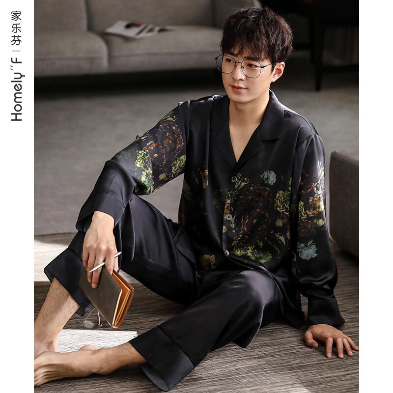 2021年新作パジャマメンズ春夏アイスシルク長袖ホームウェア薄手春秋モデル秋シミュレーションシルク jial8298713026