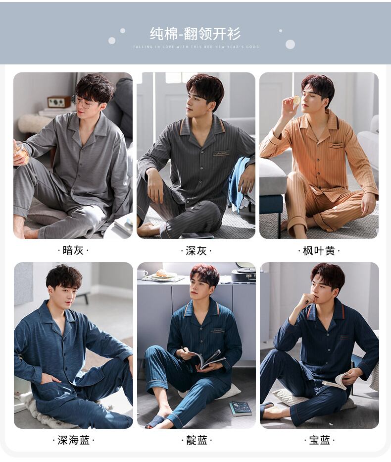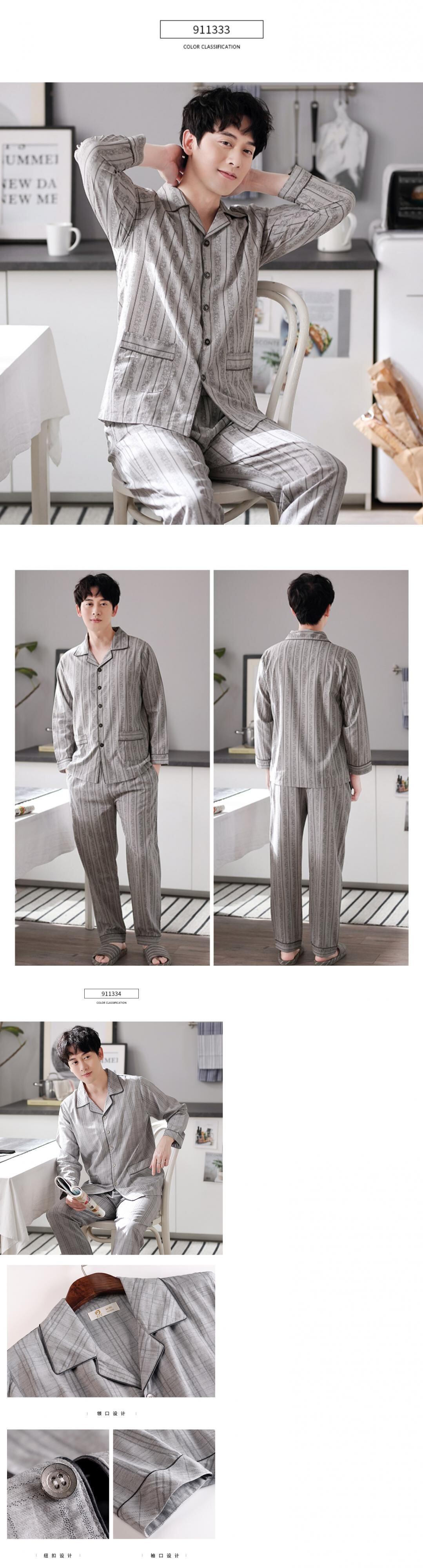 綿ガーゼパジャマメンズ春夏夏綿長袖ホームサービス春秋薄綿スーツ jial59637405209