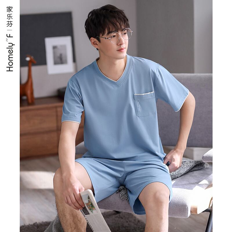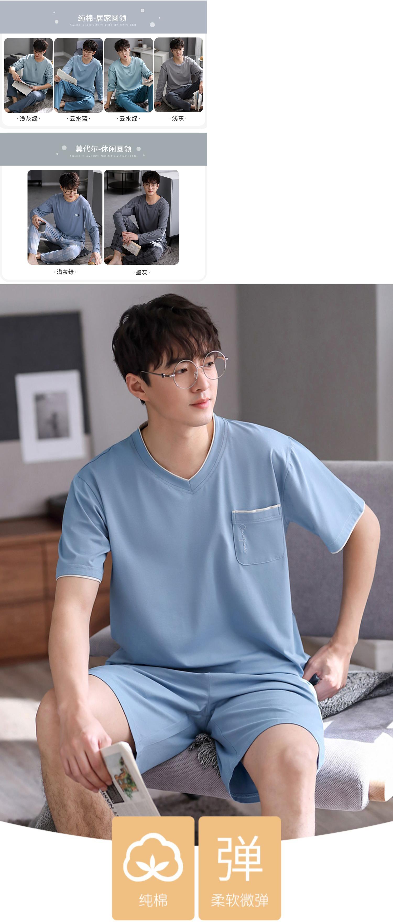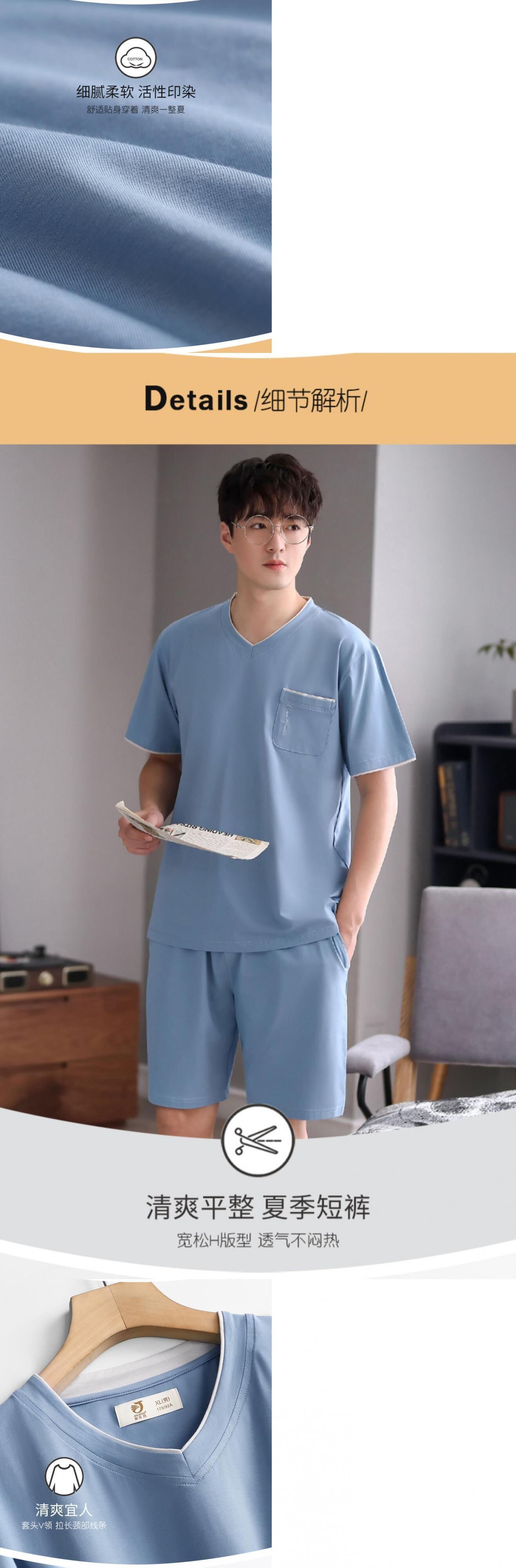 【ライクラコットン】2021年新作パジャマメンズサマーコットン半袖ショーツホームサービスサマーシンスーツ jial66376167211