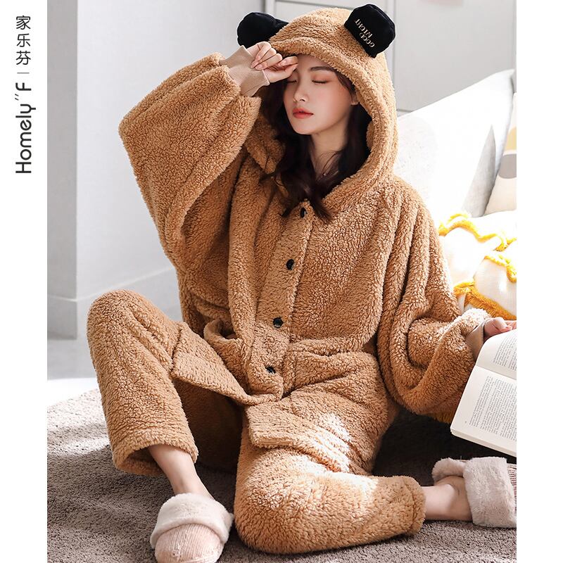 パジャマレディース秋冬モデルコーラルベルベット増粘プラスベルベット暖かさフランネルホームサービス冬かわいいスーツ jial18750650841