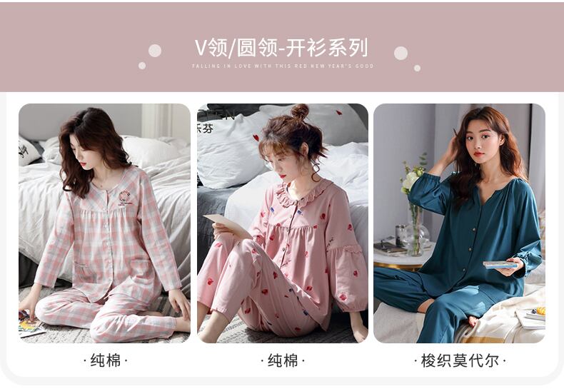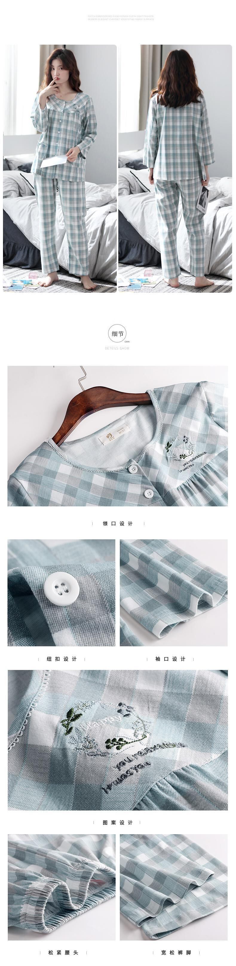 Jialefenパジャマレディース春秋秋コットン長袖ホームサービス夏薄秋冬コットンスーツ jial34406071449
