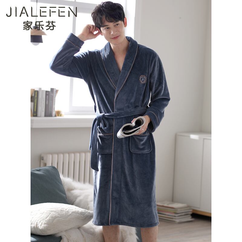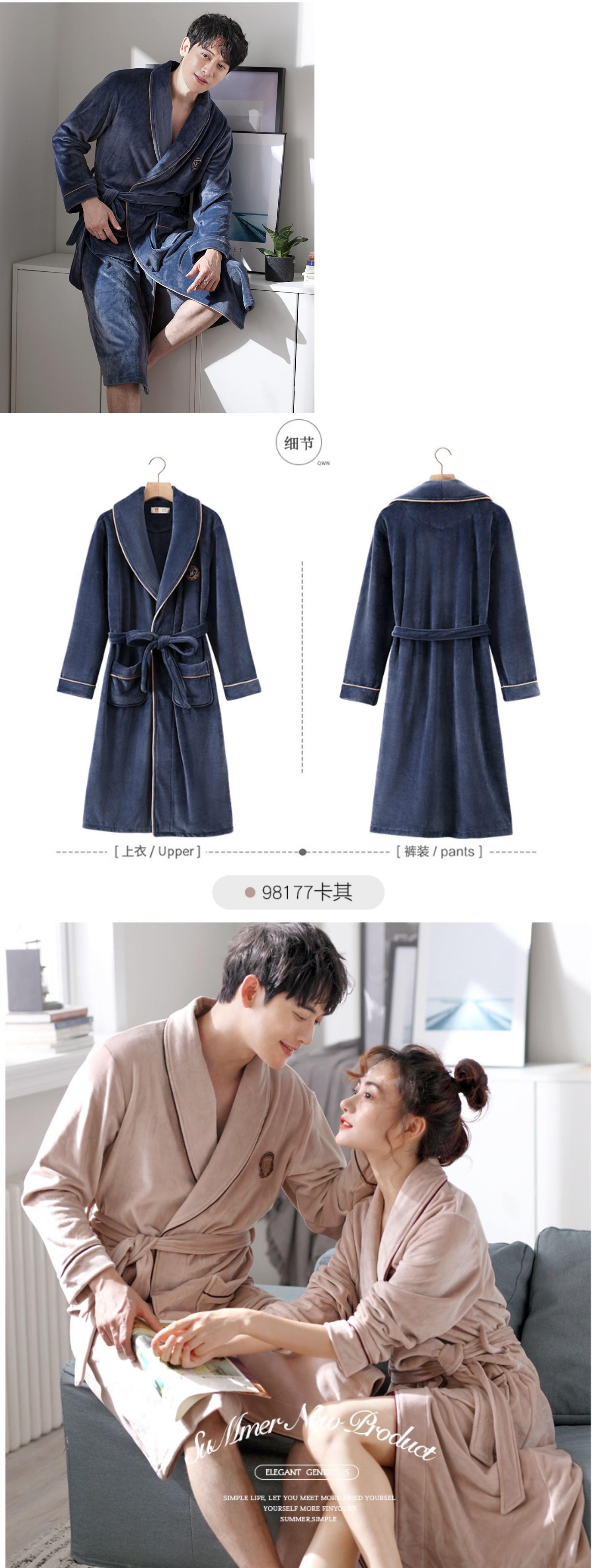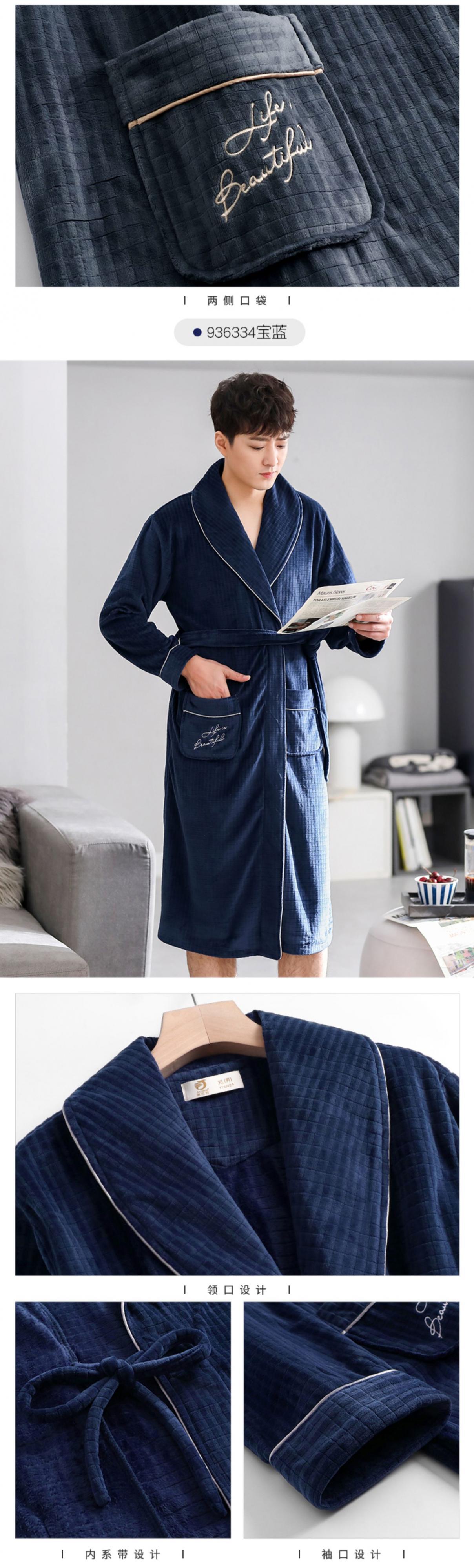 フランネルネグリジェメンズ春と秋薄い長袖バスローブコーラルフリースラージサイズワンピーススリーピングスタイル秋冬スタイル冬 jial92495470608