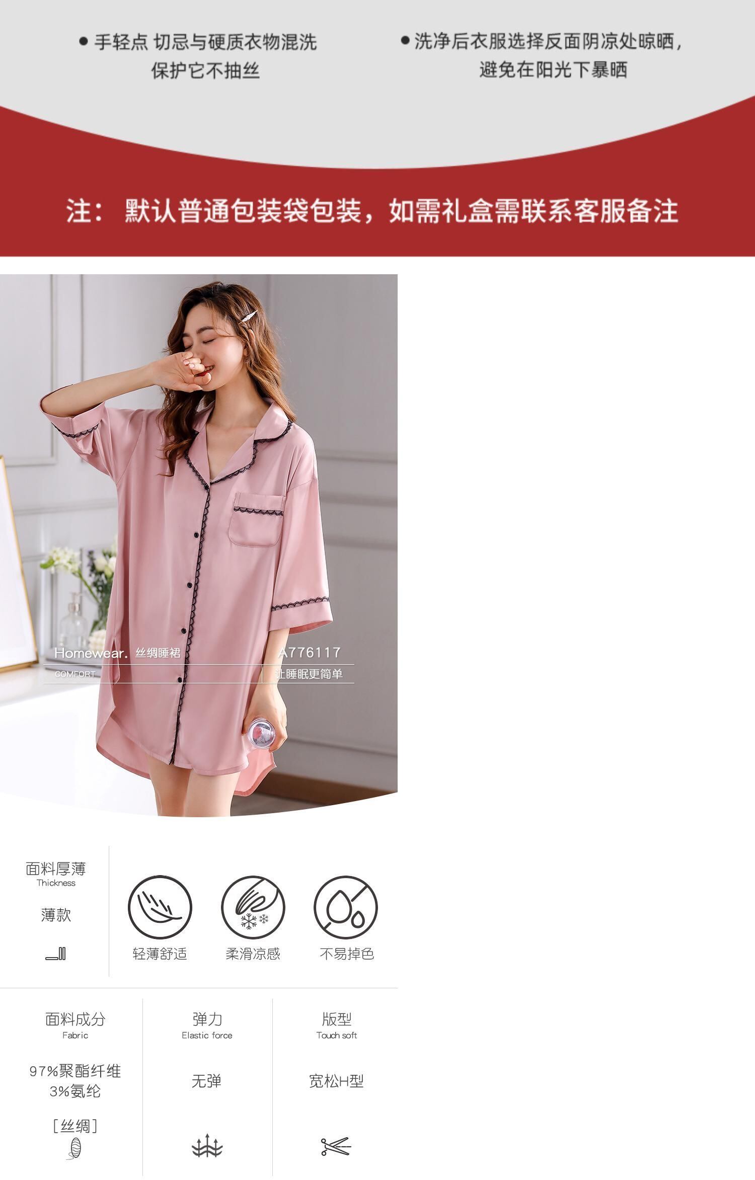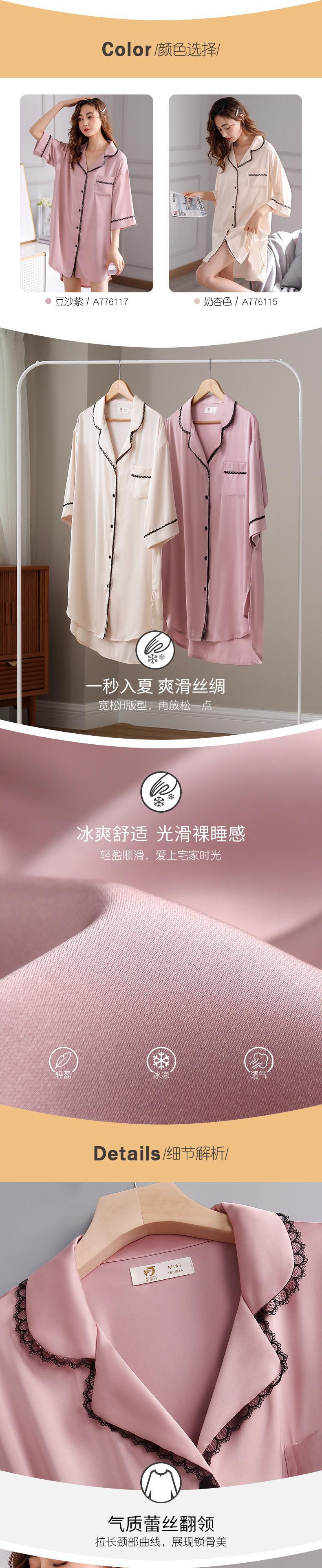 ナイトスカートレディースパジャマ春夏夏シルクアイスシルク薄手七分袖カーディガンシャツセクシーシミュレーションシルク jial30485720650