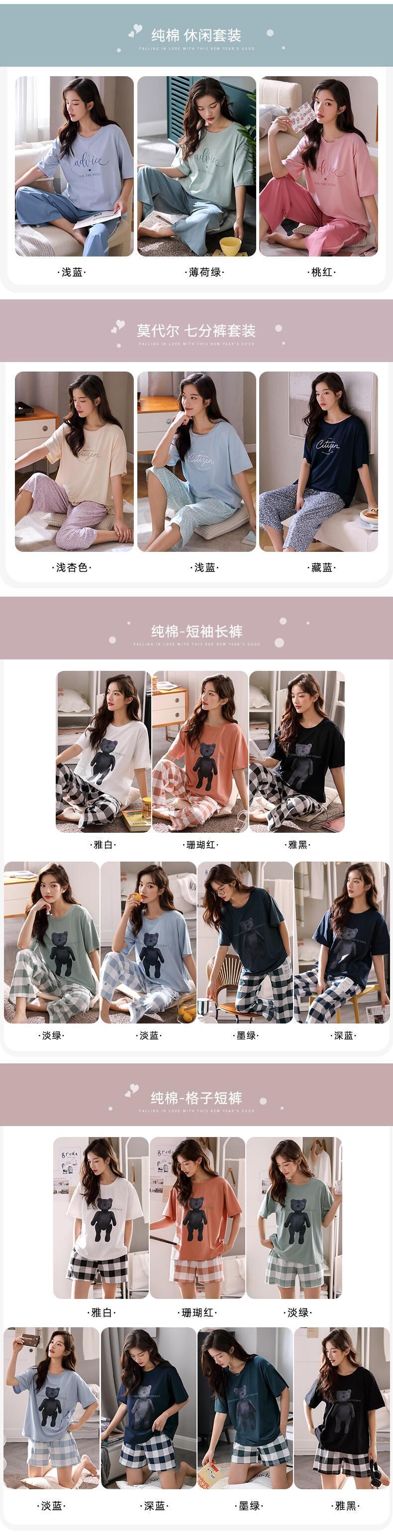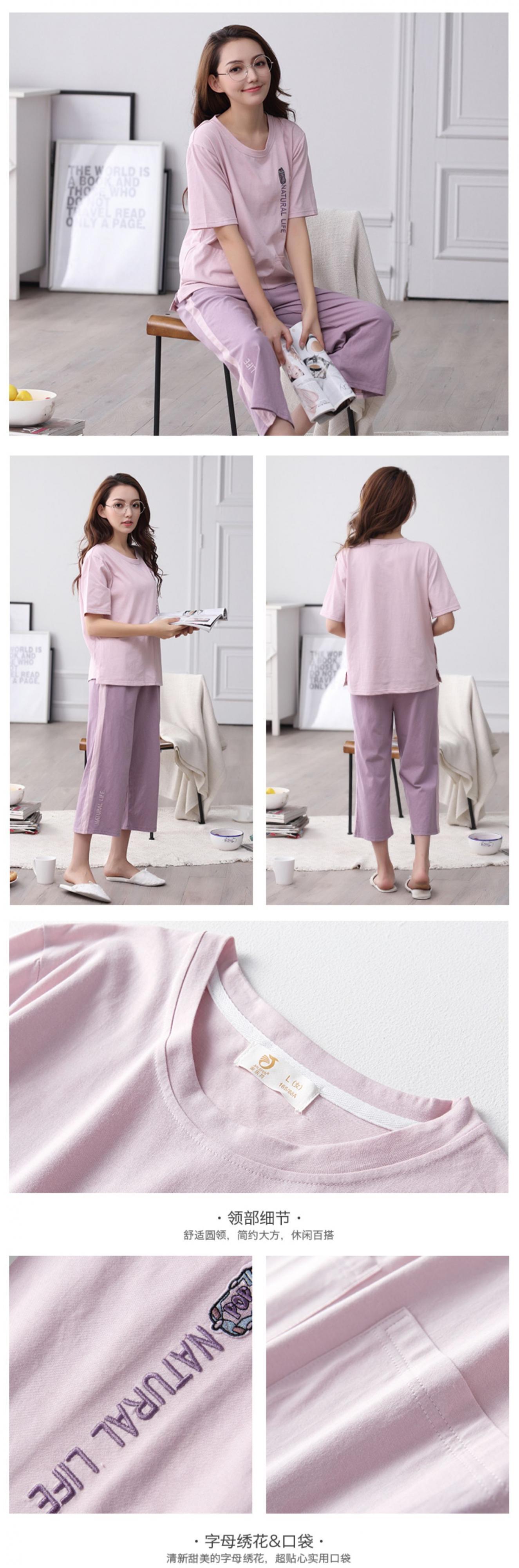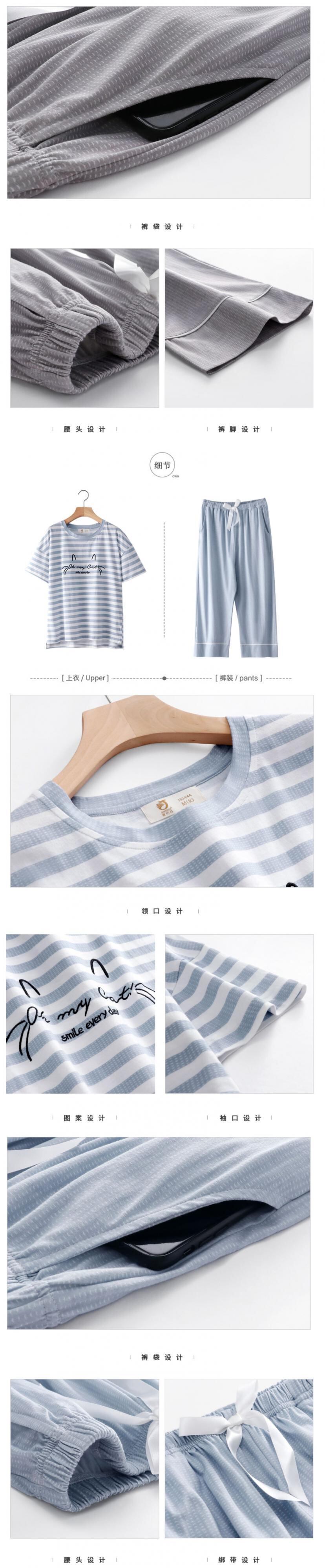 パジャマレディースサマーコットン半袖クロップドパンツ薄手の夏のホームサービスバージョンは外出可能でレジャーツーピーススーツ jial46290689959