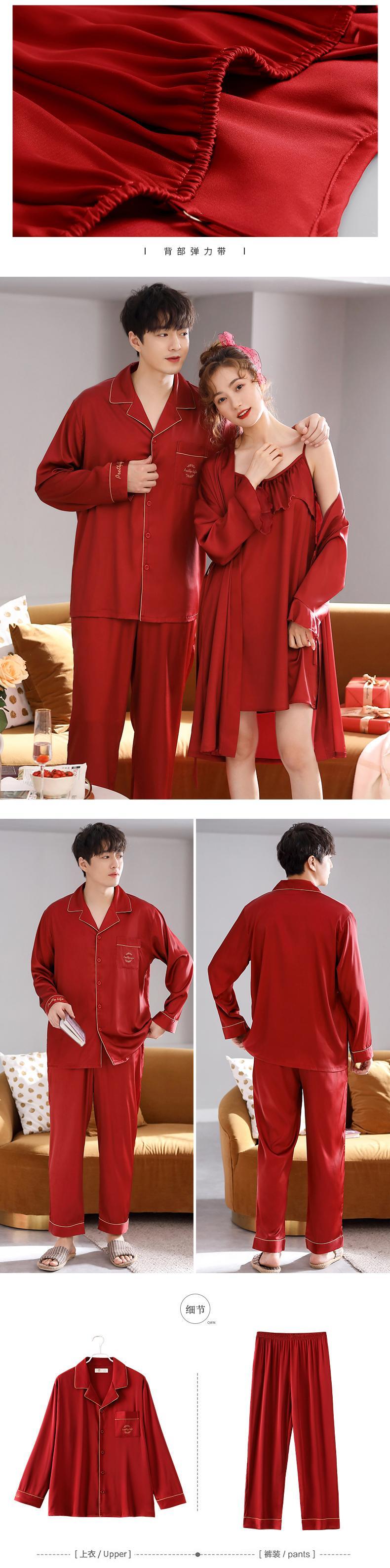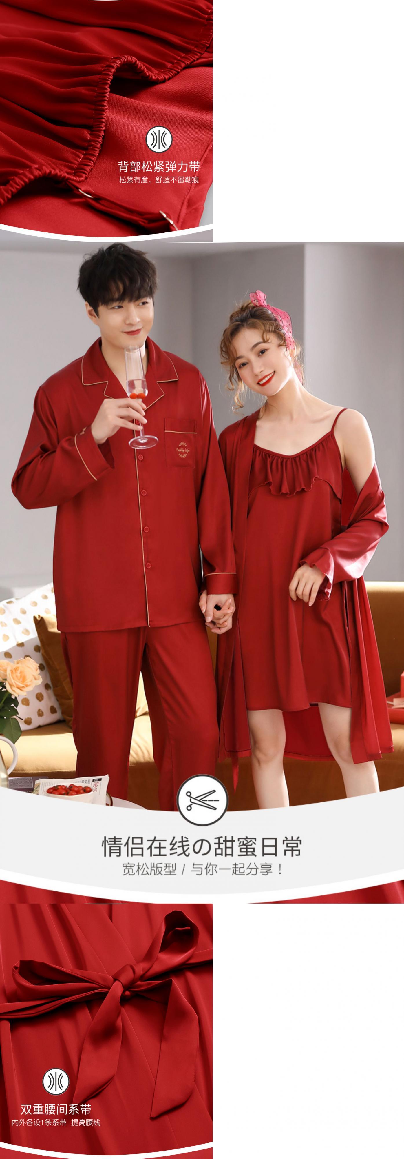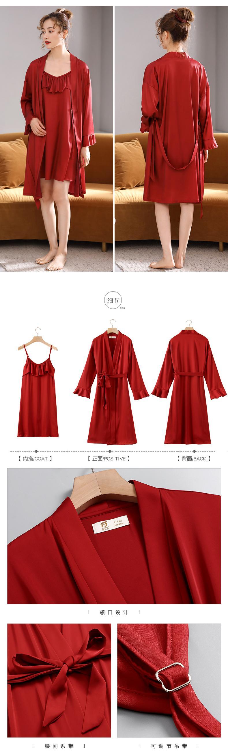 lywed花嫁夫婦パジャマ女性シルクアイスシルクセクシーなスリングネグリジェナイトガウンドレッシングガウン大きな赤いスーツ jial35308703297