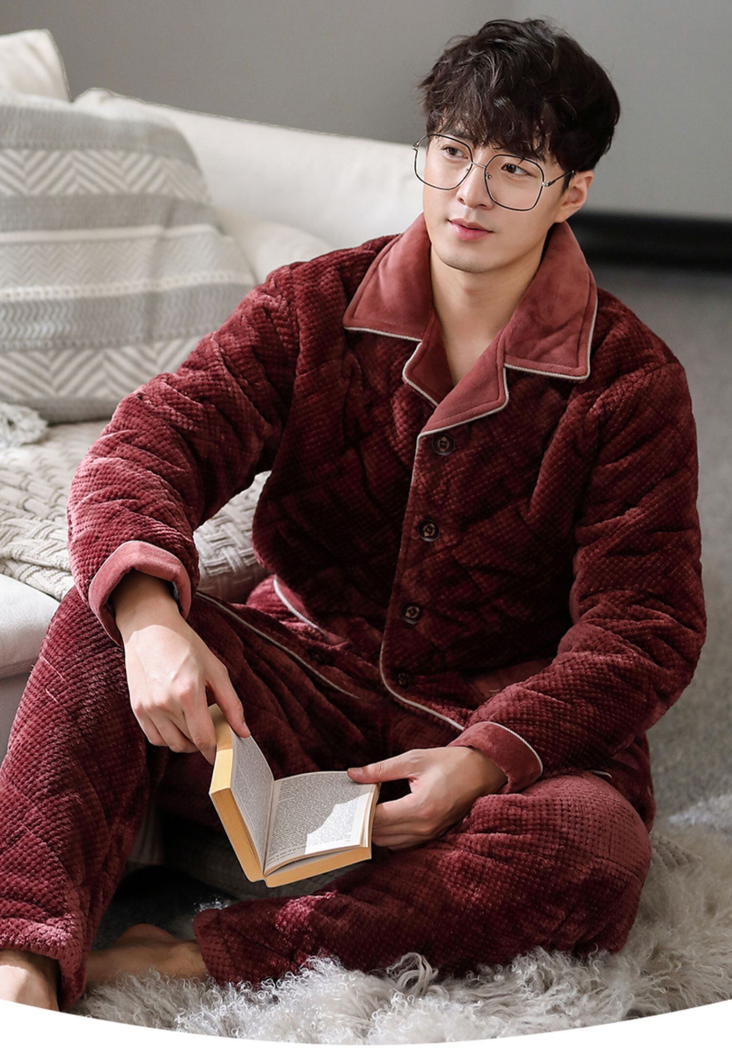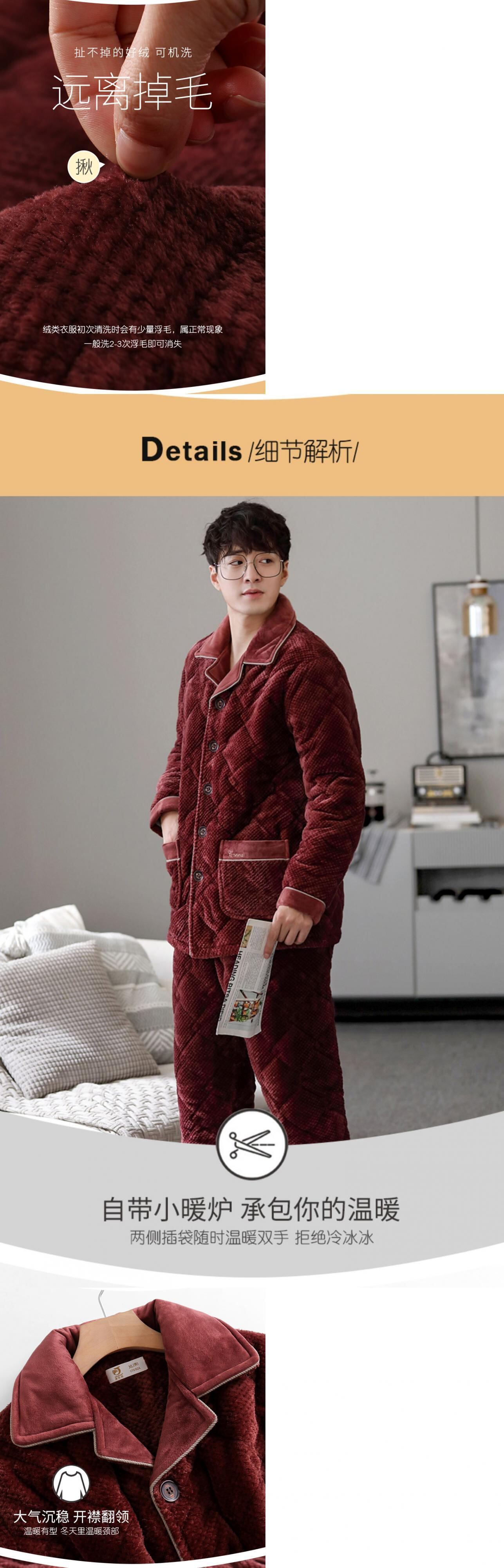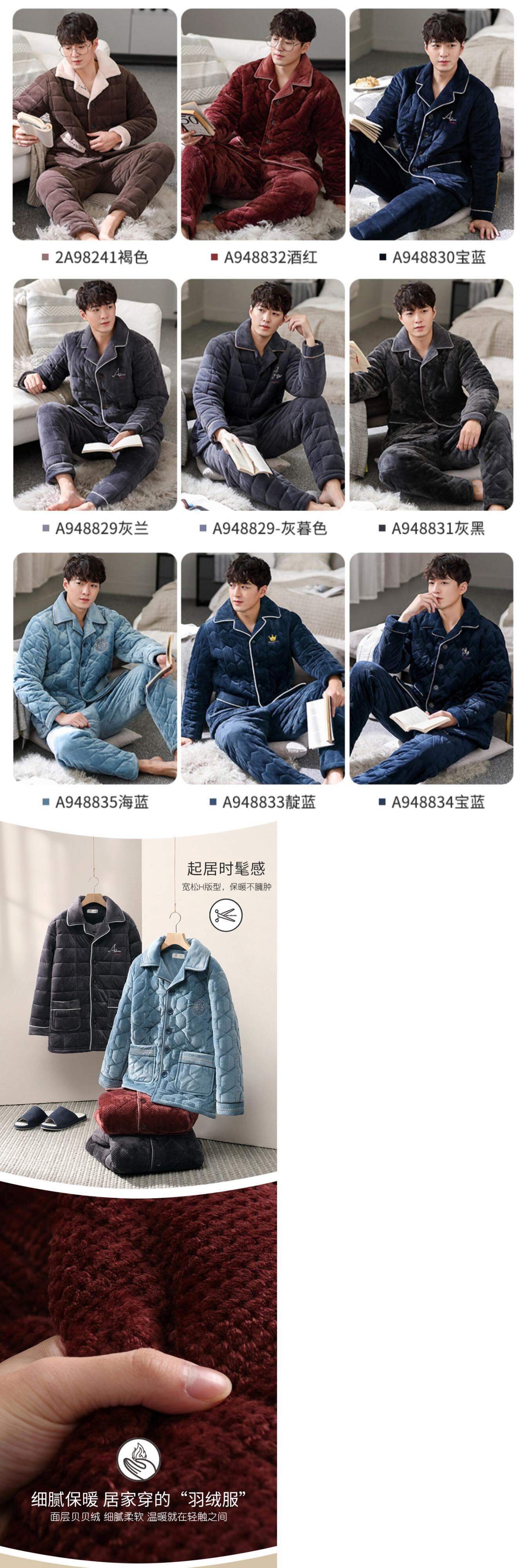 パジャマメンズ冬3層厚キルティングジャケットコーラルフリースフランネルシックニングプラスベルベットウォームホームサービススーツ jial33400049498