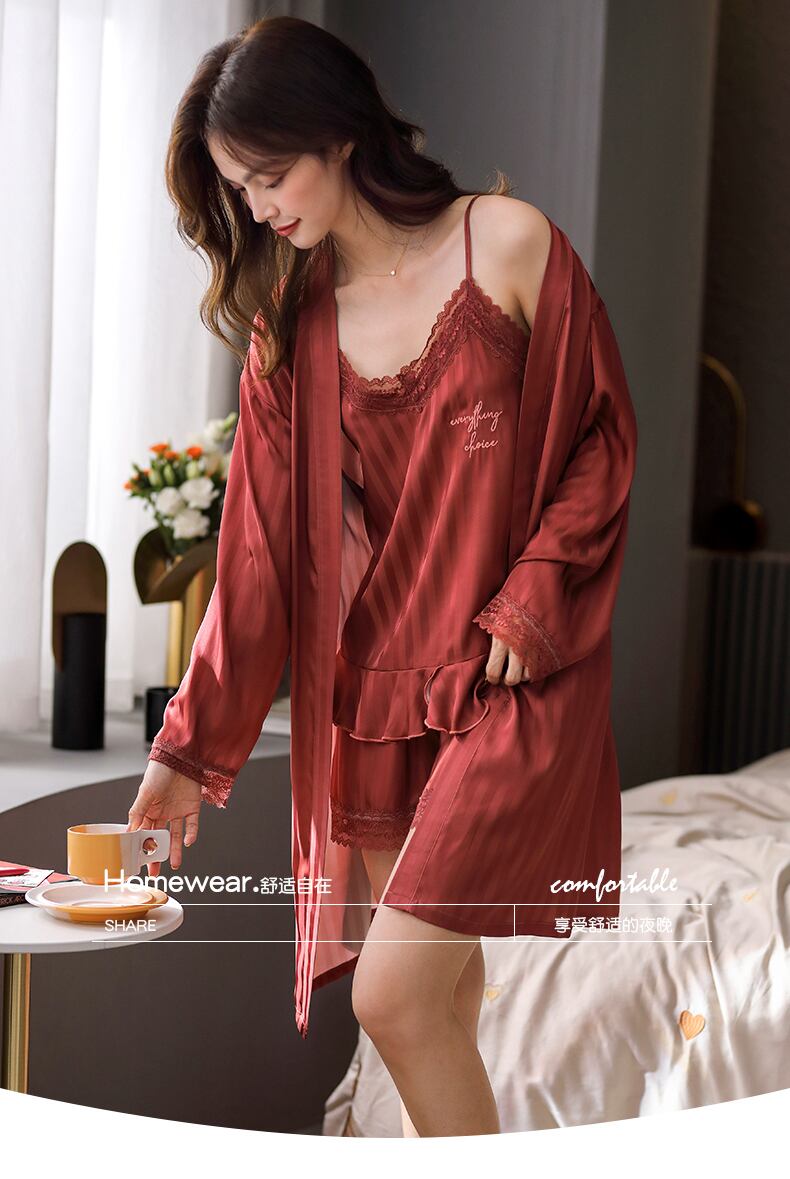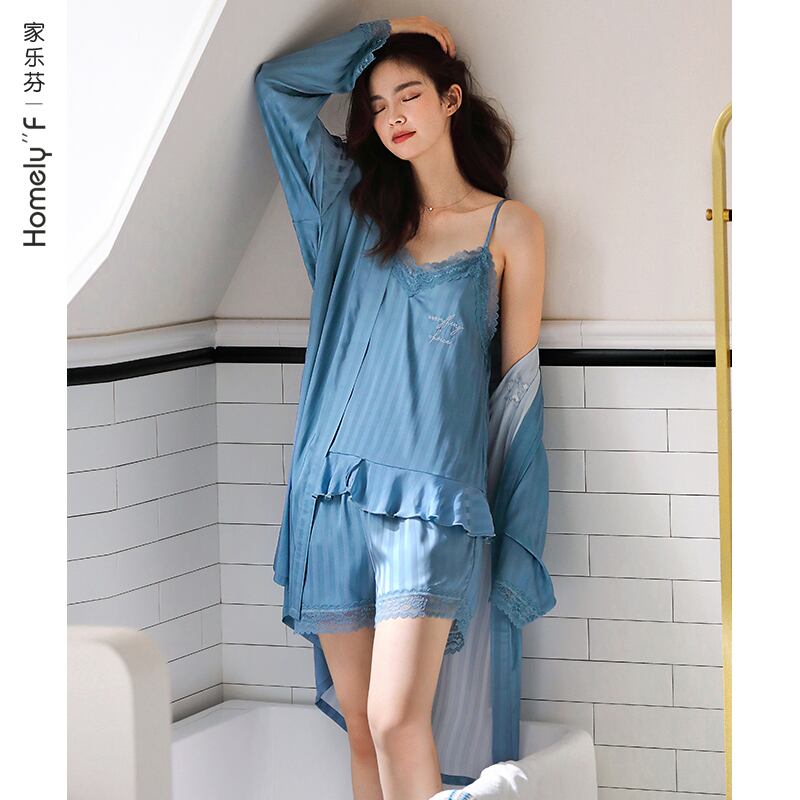 パジャマレディース春と秋のアイスシルクバスローブローブ春と夏のシミュレーションシルクスリングセクシーな薄いスリーピーススーツ jial63803048339