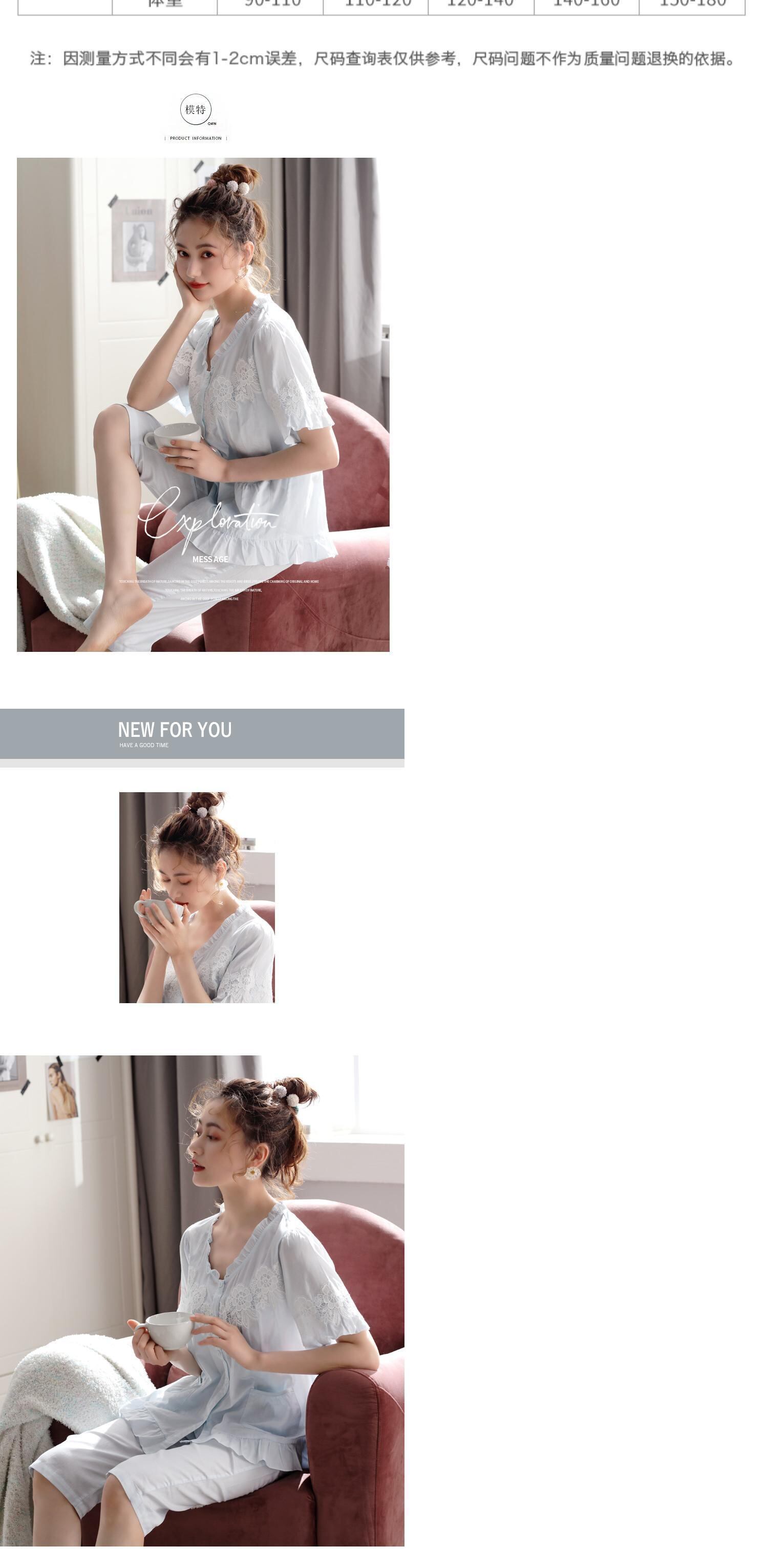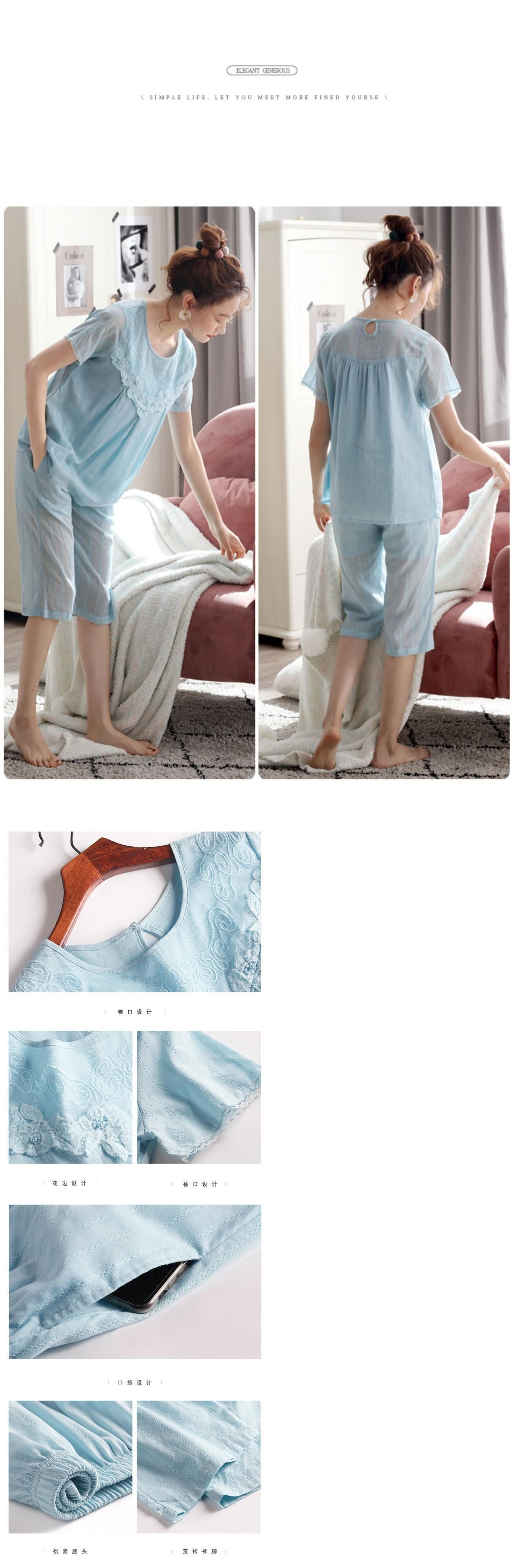 パジャマレディースサマーコットン半袖クロップドパンツカーディガンウーブンコットンヤーンホームサービスサマーシンラージサイズスーツ jial56286484872
