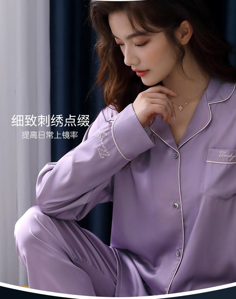 パジャマレディース春夏シルクアイスシルク長袖春秋秋秋薄片人工シルクホームサービススーツ jial42191090080