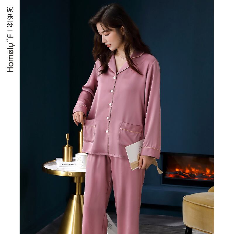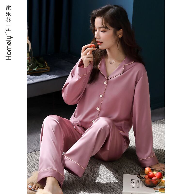 パジャマレディース春夏シルクアイスシルク長袖春秋秋薄切片人工シルクホームサービスレディーススーツ jial68428873518