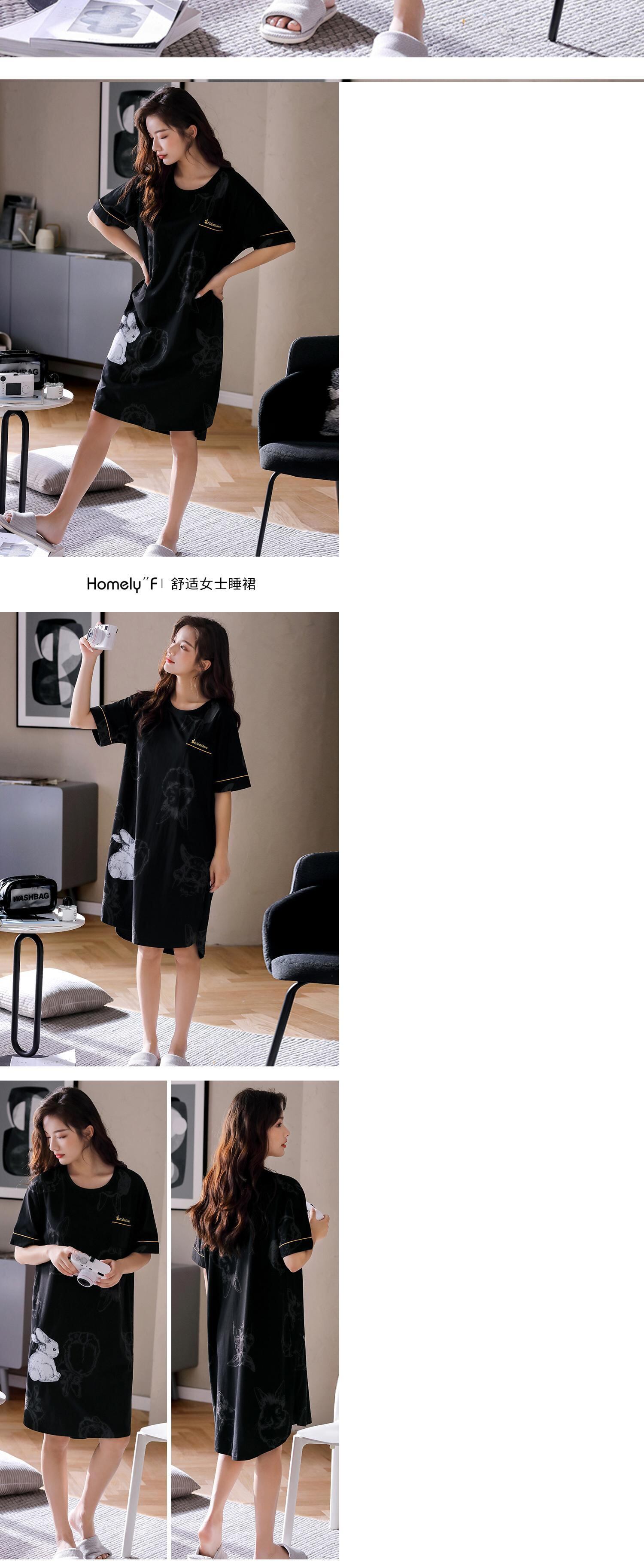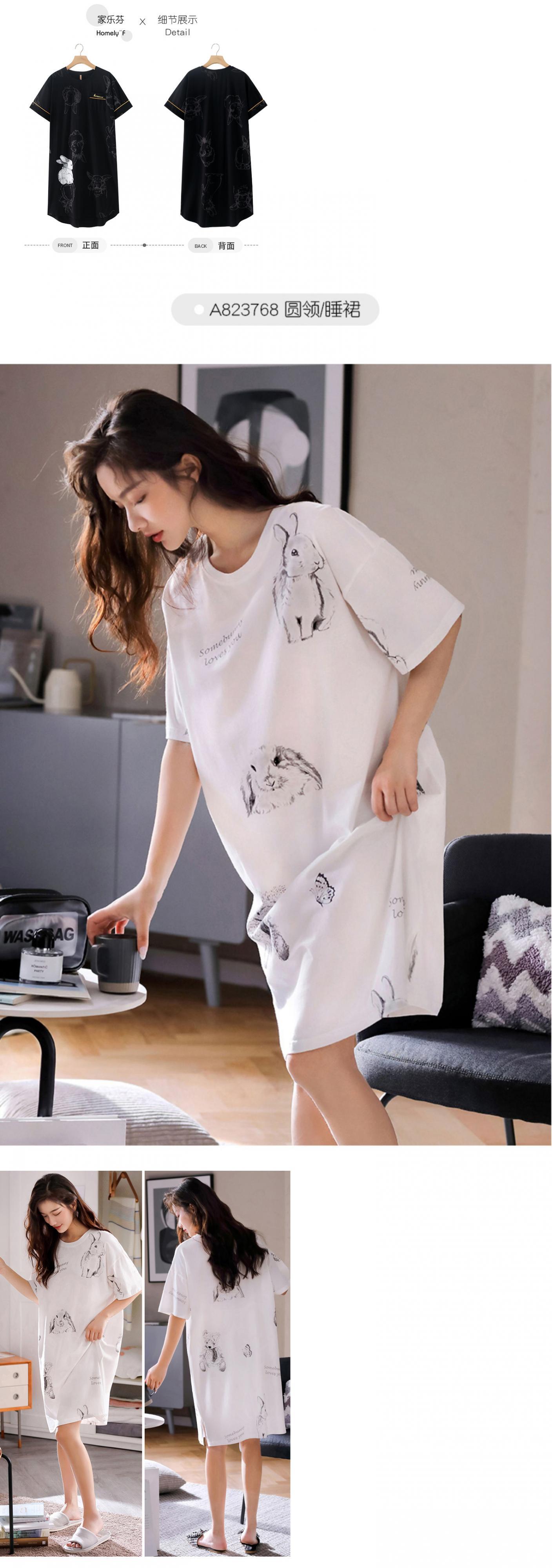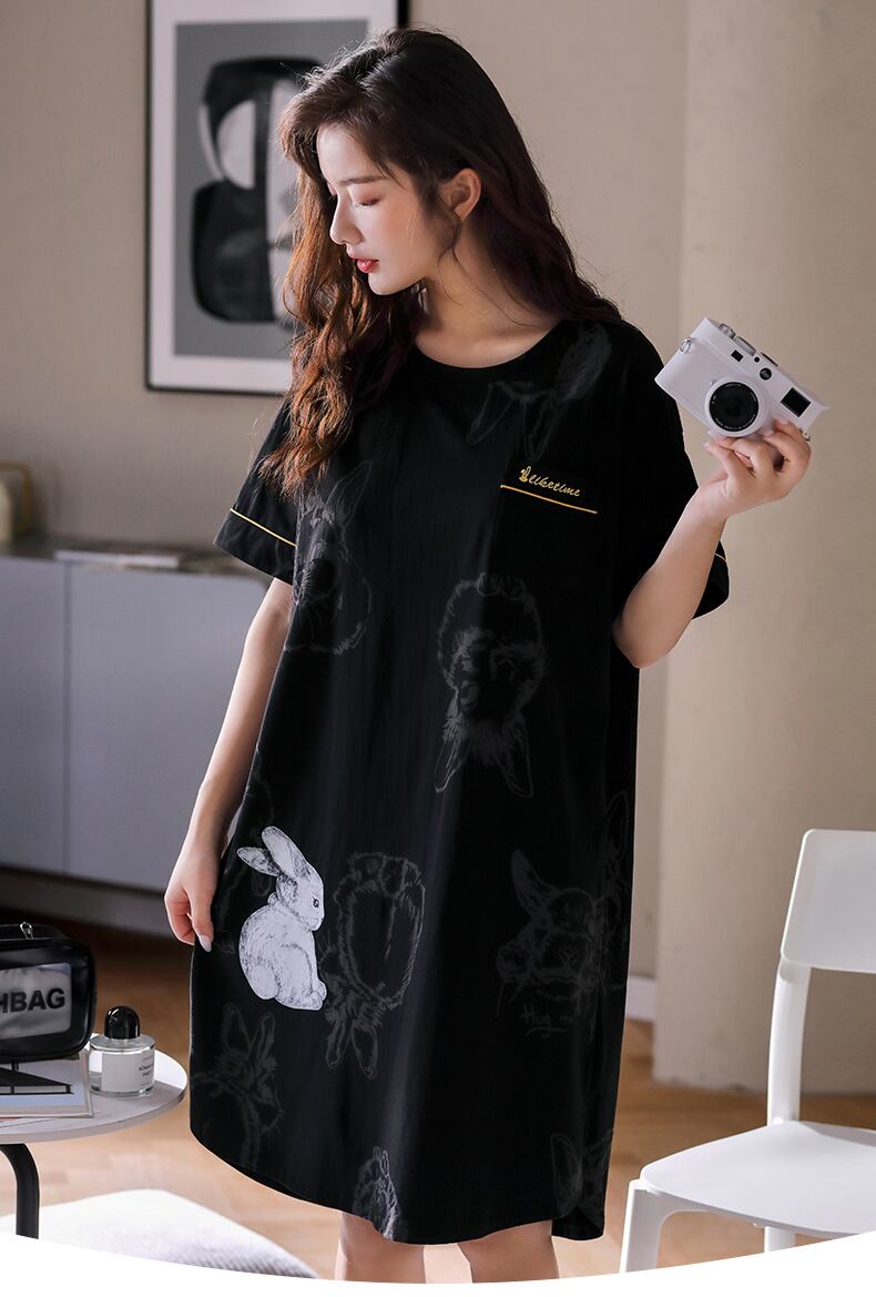 ナイトスカートレディースパジャマ夏夏薄手のコットン半袖ロングホーム服ルーズラージサイズカジュアル外で着用可能 jial43591540662