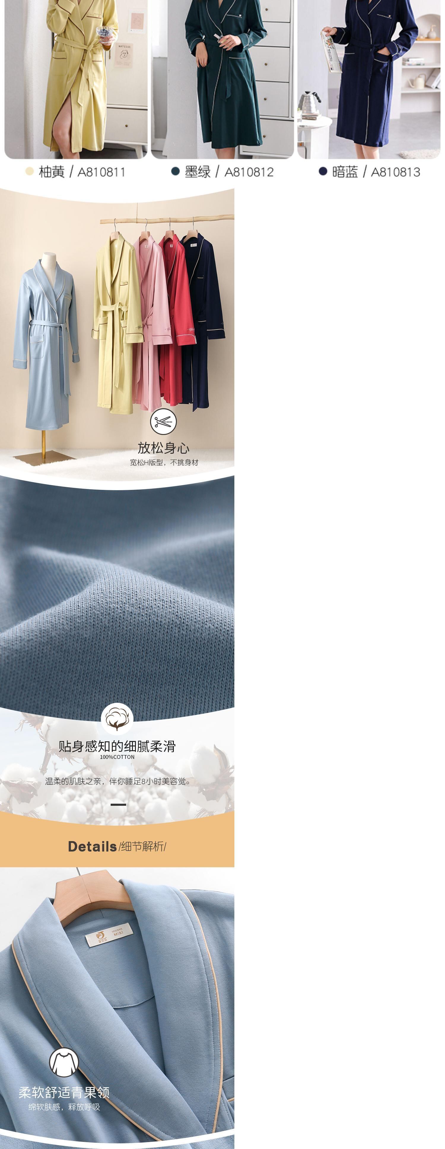 ナイトガウンレディースパジャマ春と秋のバスローブナイトドレス長く薄いセクション純綿長袖綿浴衣ホームサービスeseスタイル jial97880959977