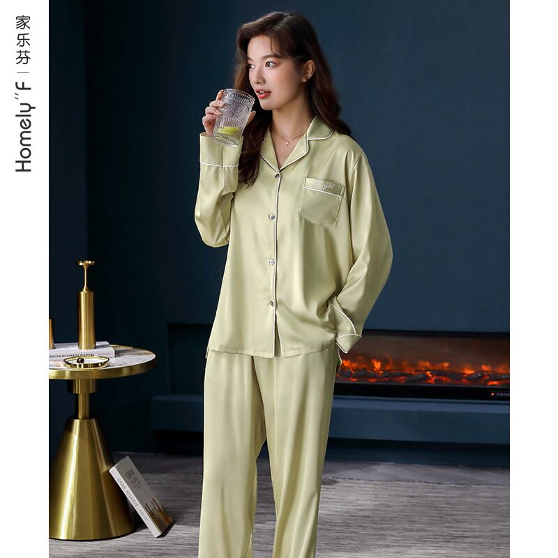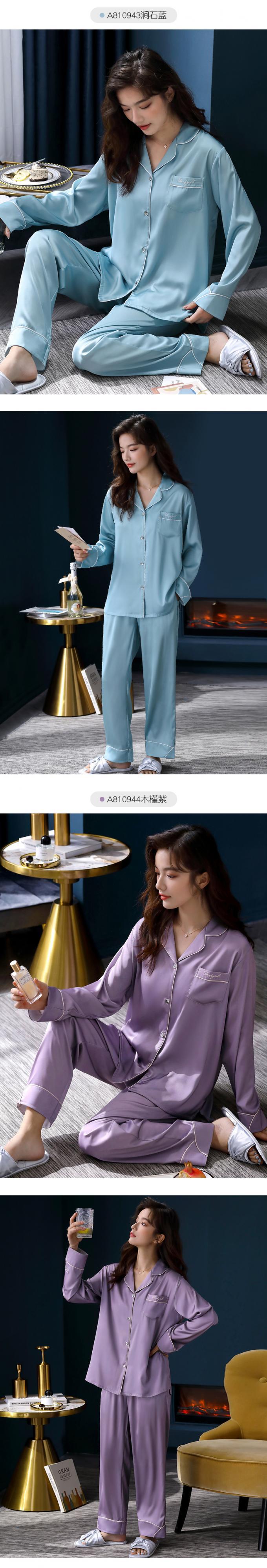 パジャマレディース春夏シルクアイスシルク長袖春秋秋薄切片人工シルクホームサービスレディーススーツ jial85401260605