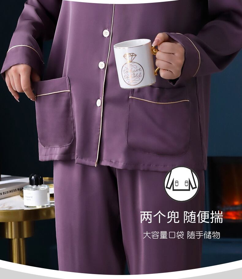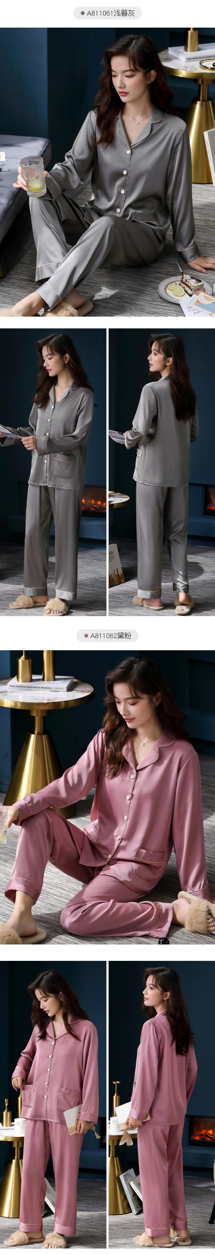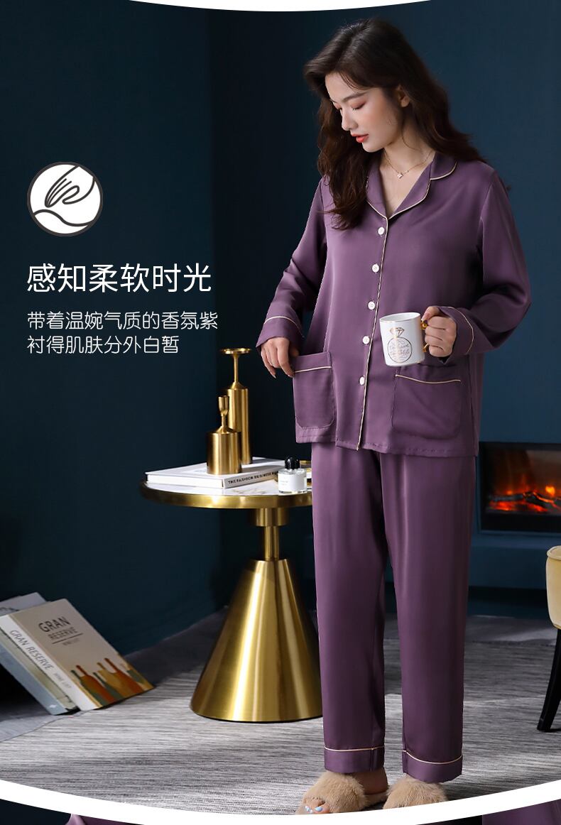 パジャマレディース春夏シルクアイスシルク長袖春秋秋薄切片人工シルクホームサービスレディーススーツ jial1757363756